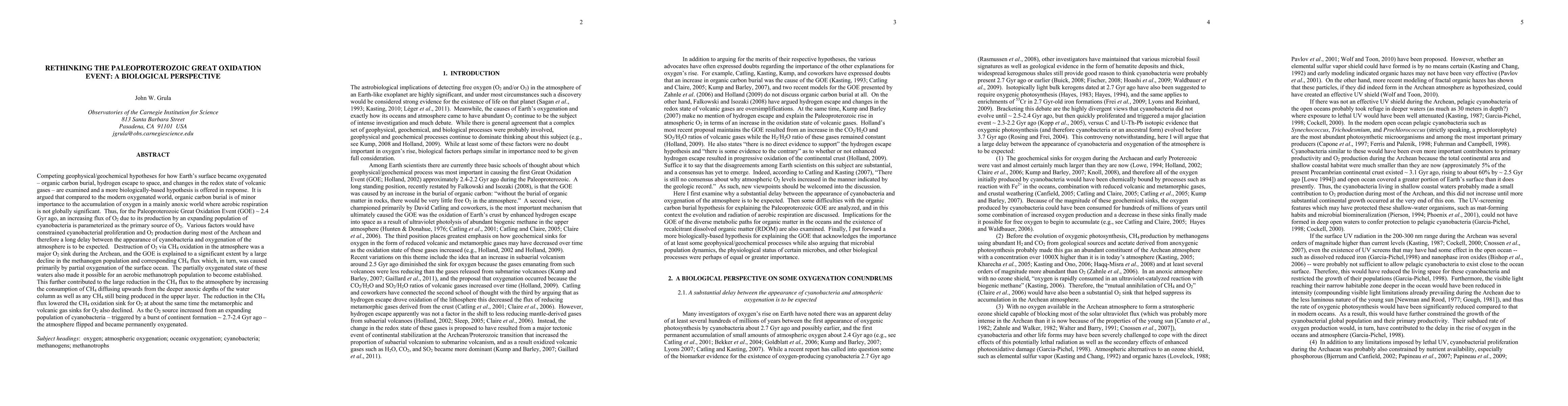 Competing geophysical/geochemical hypotheses for how Earth's surface became oxygenated - organic carbon burial, hydrogen escape to space, and changes in the redox state of volcanic gases - are examined and a more biologically-based hypothesis is offered in response. It is argued that organic carbon burial is of minor importance to the accumulation of oxygen in a mainly anoxic world where aerobic respiration is not globally significant. Thus, for the Great Oxidation Event (GOE) ~ 2.4 Gyr ago, an increasing flux of O2 due to its production by an expanding population of cyanobacteria is parameterized as the primary source of O2. Various factors would have constrained cyanobacterial proliferation and O2 production during most of the Archean and therefore a long delay between the appearance of cyanobacteria and oxygenation of the atmosphere is to be expected. Destruction of O2 via CH4 oxidation in the atmosphere was a major O2 sink during the Archean, and the GOE is explained to a significant extent by a large decline in the methanogen population and corresponding CH4 flux which, in turn, was caused primarily by partial oxygenation of the surface ocean. The partially oxygenated state of these waters also made it possible for an aerobic methanotroph population to become established. This further contributed to the large reduction in the CH4 flux to the atmosphere by increasing the consumption of CH4 diffusing upwards from the deeper anoxic depths of the water column as well as any CH4 still being produced in the upper layer. The reduction in the CH4 flux lowered the CH4 oxidation sink for O2 at about the same time the metamorphic and volcanic gas sinks for O2 also declined. As the O2 source increased from an expanding population of cyanobacteria - triggered by a burst of continent formation ~ 2.7-2.4 Gyr ago - the atmosphere flipped and became permanently oxygenated.