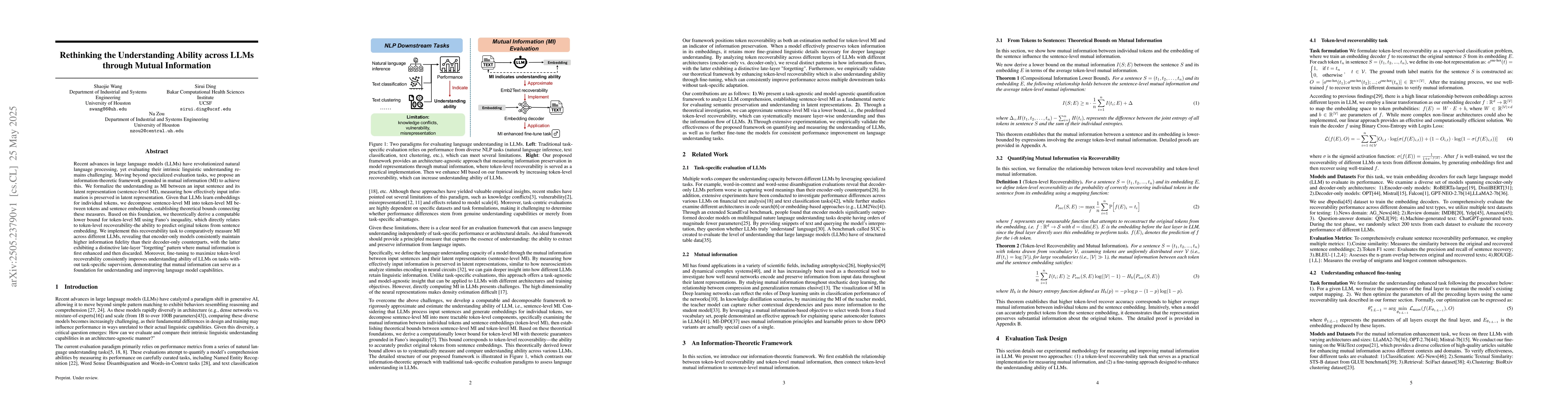 Researchers propose a new framework to evaluate large language models' understanding ability using mutual information, finding that encoder-only models retain higher information fidelity than decoder-only counterparts.