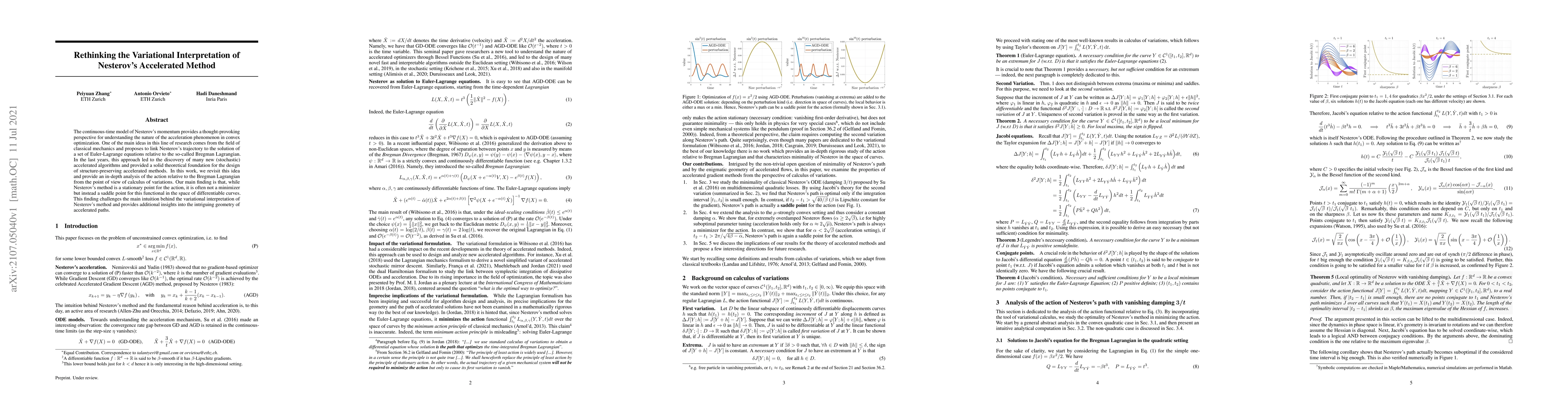 This paper revisits the continuous-time model of Nesterov's accelerated method, revealing that while it is a stationary point for the Bregman Lagrangian action, it often acts as a saddle point rather than a minimizer. This challenges the conventional variational interpretation and offers new insights into the geometry of accelerated optimization paths.