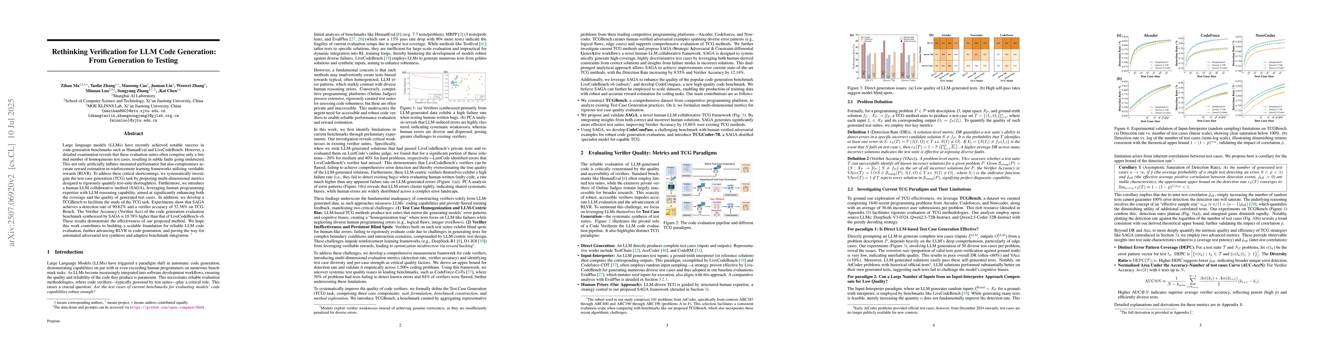 Large language models (LLMs) have recently achieved notable success in code-generation benchmarks such as HumanEval and LiveCodeBench. However, a detailed examination reveals that these evaluation suites often comprise only a limited number of homogeneous test cases, resulting in subtle faults going undetected. This not only artificially inflates measured performance but also compromises accurate reward estimation in reinforcement learning frameworks utilizing verifiable rewards (RLVR). To address these critical shortcomings, we systematically investigate the test-case generation (TCG) task by proposing multi-dimensional metrics designed to rigorously quantify test-suite thoroughness. Furthermore, we introduce a human-LLM collaborative method (SAGA), leveraging human programming expertise with LLM reasoning capability, aimed at significantly enhancing both the coverage and the quality of generated test cases. In addition, we develop a TCGBench to facilitate the study of the TCG task. Experiments show that SAGA achieves a detection rate of 90.62% and a verifier accuracy of 32.58% on TCGBench. The Verifier Accuracy (Verifier Acc) of the code generation evaluation benchmark synthesized by SAGA is 10.78% higher than that of LiveCodeBench-v6. These results demonstrate the effectiveness of our proposed method. We hope this work contributes to building a scalable foundation for reliable LLM code evaluation, further advancing RLVR in code generation, and paving the way for automated adversarial test synthesis and adaptive benchmark integration.