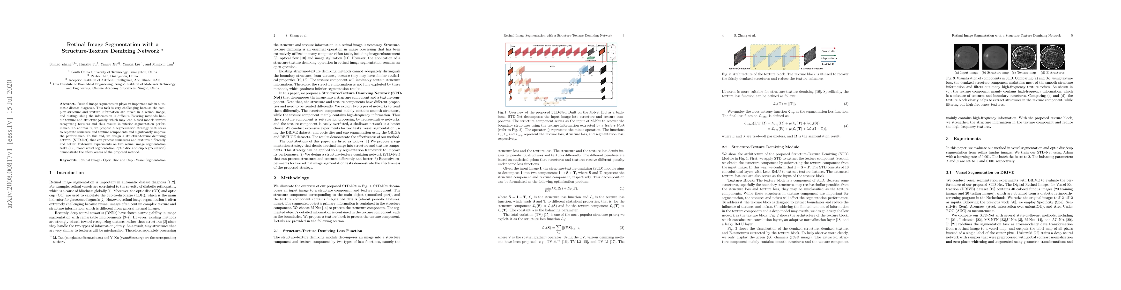This paper proposes a structure-texture demixing network (STD-Net) to improve retinal image segmentation by separately processing structure and texture components, leading to better performance than existing joint methods. Experiments on blood vessel, optic disc, and cup segmentation tasks show significant improvements.