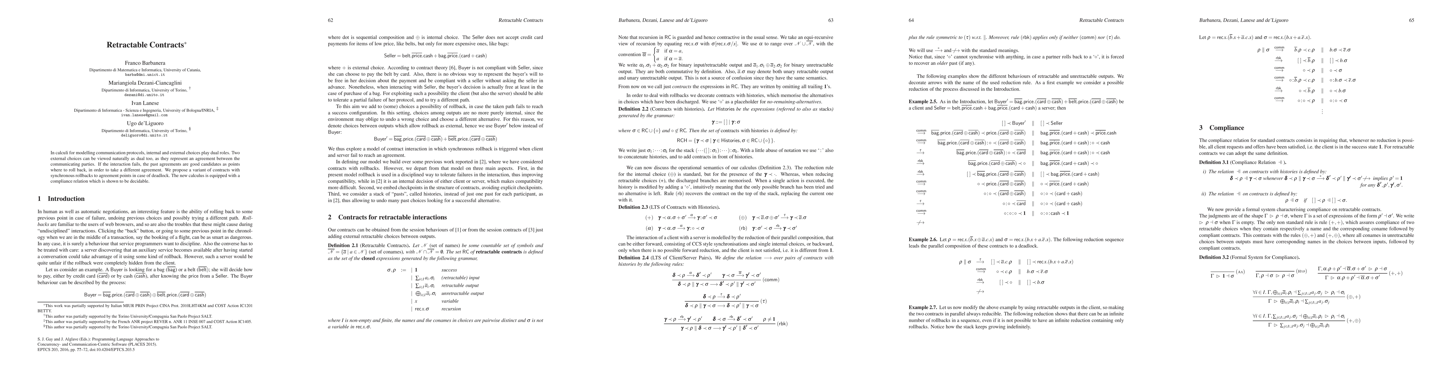 In calculi for modelling communication protocols, internal and external choices play dual roles. Two external choices can be viewed naturally as dual too, as they represent an agreement between the communicating parties. If the interaction fails, the past agreements are good candidates as points where to roll back, in order to take a different agreement. We propose a variant of contracts with synchronous rollbacks to agreement points in case of deadlock. The new calculus is equipped with a compliance relation which is shown to be decidable.