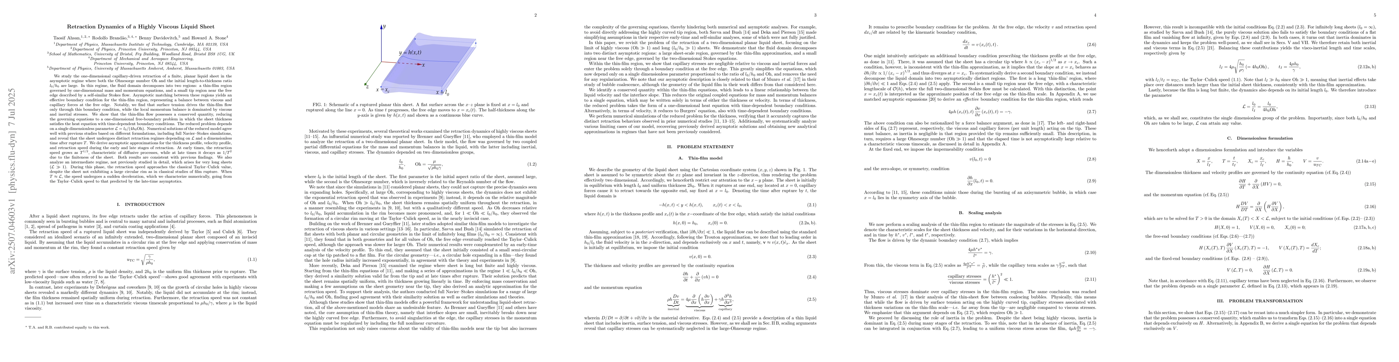 We study the one-dimensional capillary-driven retraction of a finite, planar liquid sheet in the asymptotic regime where both the Ohnesorge number $\mathrm{Oh}$ and the initial length-to-thickness ratio $l_0/h_0$ are large. In this regime, the fluid domain decomposes into two regions: a thin-film region governed by one-dimensional mass and momentum equations, and a small tip region near the free edge described by a self-similar Stokes flow. Asymptotic matching between these regions yields an effective boundary condition for the thin-film region, representing a balance between viscous and capillary forces at the free edge. Surface tension drives the thin-film flow only through this boundary condition, while the local momentum balance is dominated by viscous and inertial stresses. We show that the thin-film flow possesses a conserved quantity, reducing the equation of thickness to heat equation with time-dependent boundary conditions. The reduced problem depends on a single dimensionless parameter $\mathcal{L} = l_0 / (4 h_0 \mathrm{Oh})$. Numerical solutions of the reduced model agree well with previous studies and reveal that the sheet undergoes distinct retraction regimes depending on $\mathcal{L}$ and a dimensionless time after rupture $T$. We derive asymptotic approximations for the thickness profile, velocity profile, and retraction speed during the early and late stages of retraction. At early times, the retraction speed grows as $T^{1/2}$, while at late times it decays as $1/T^2$. An intermediate regime arises for very long sheets ($\mathcal{L} \gg 1$). During this phase, the retraction speed approaches the Taylor-Culick value. When $T \approx \mathcal{L}$, the speed undergoes fast deceleration from the Taylor-Culick speed to late-time asymptotics.