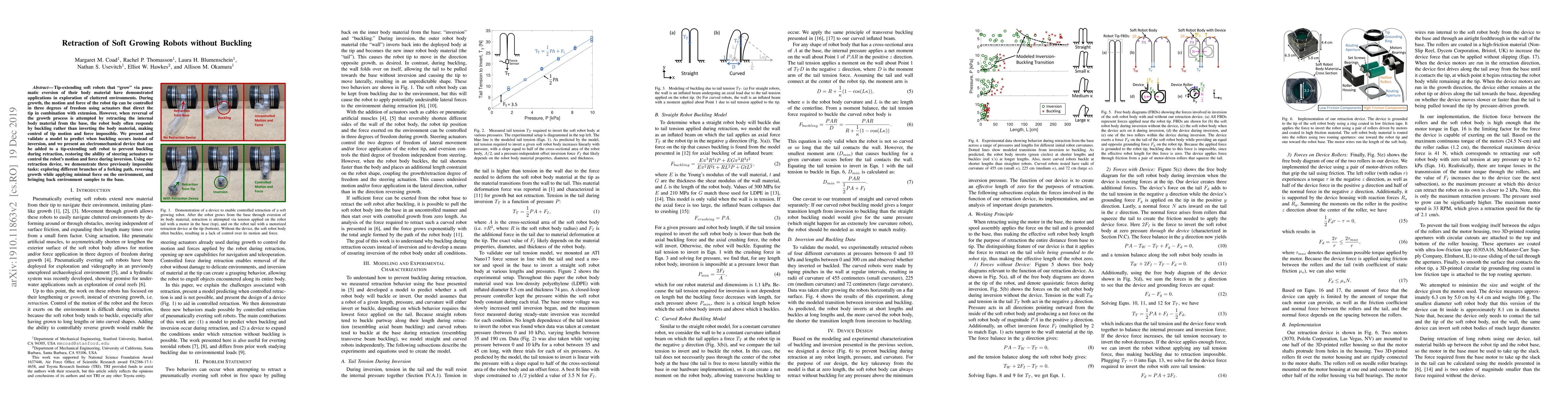 This paper presents a model to predict buckling during the retraction of tip-extending soft growing robots and introduces an electromechanical device to prevent buckling, enabling controlled retraction and the execution of previously impossible tasks. The device restores the ability to steer actuators, facilitating exploration and sample retrieval.