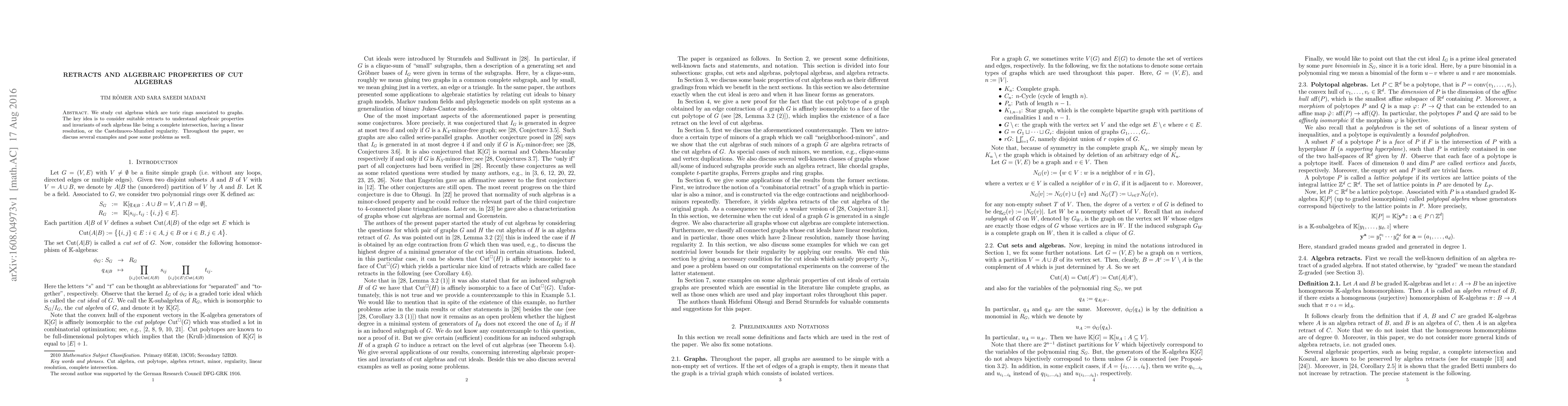 This paper studies cut algebras associated to graphs, exploring their algebraic properties and invariants through suitable retracts. It discusses examples and poses problems related to complete intersection, linear resolution, and regularity.