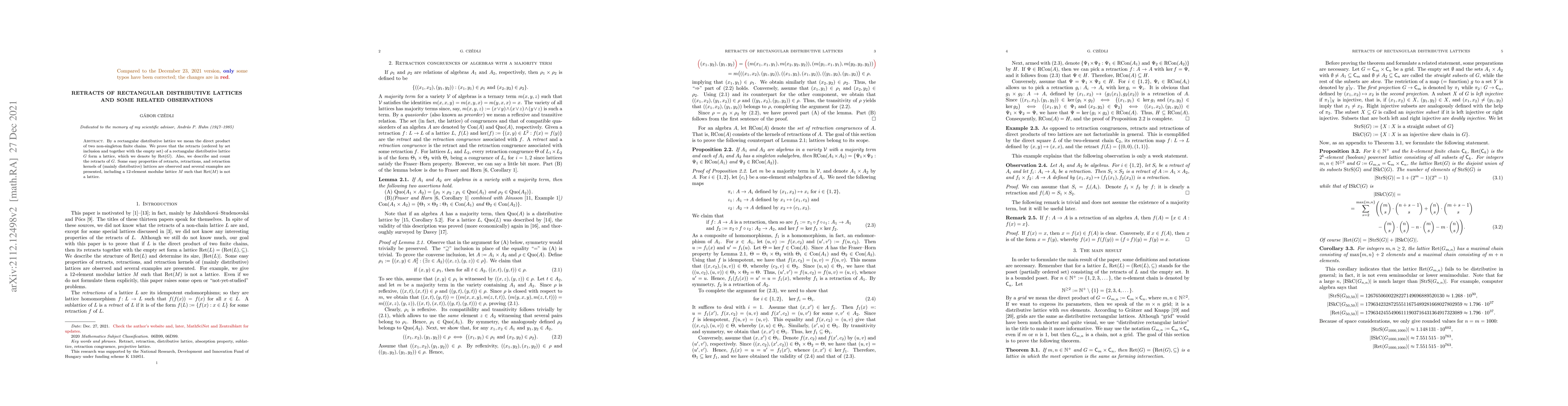 This paper proves that retracts of rectangular distributive lattices form a lattice and describes their structure. It also counts the retracts and observes properties of retractions and kernels in distributive lattices, providing examples including a 12-element modular lattice where retracts do not form a lattice.