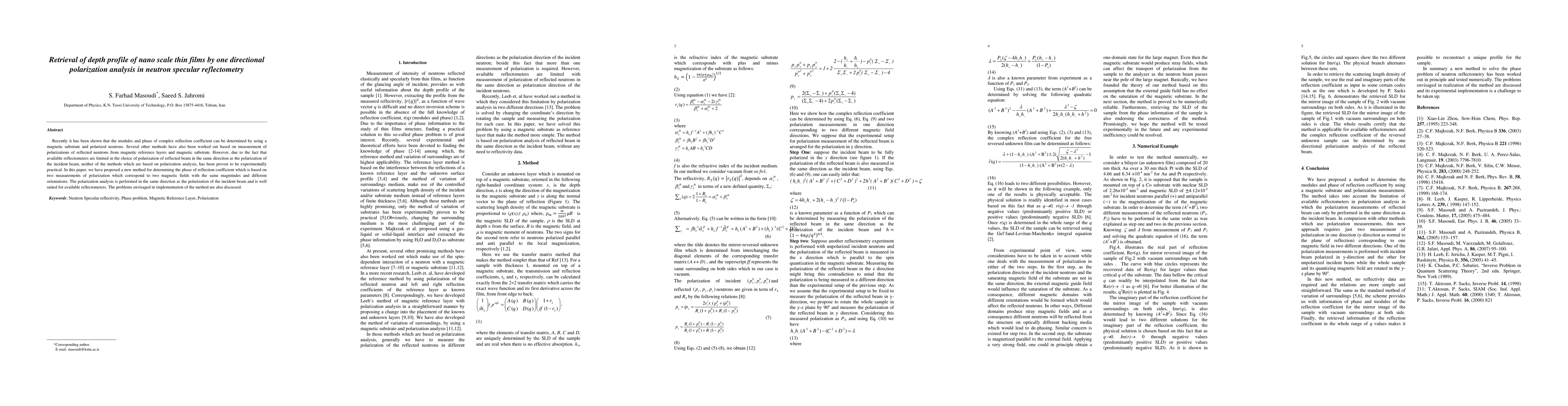 Recently it has been shown that the modules and phase of complex reflection coefficient can be determined by using a magnetic substrate and polarized neutrons. Several other methods have also been worked out based on measurement of polarizations of reflected neutrons from magnetic reference layers and magnetic substrate. However, due to the fact that available reflectometers are limited in the choice of polarization of reflected beam in the same direction as the polarization of the incident beam, neither of the methods which are based on polarization analysis, has been proven to be experimentally practical. In this paper, we have proposed a new method for determining the phase of reflection coefficient which is based on two measurements of polarization which correspond to two magnetic fields with the same magnitudes and different orientations. The polarization analysis is performed in the same direction as the polarization of the incident beam and is well suited for available reflectometers. The problems envisaged in implementation of the method are also discussed.