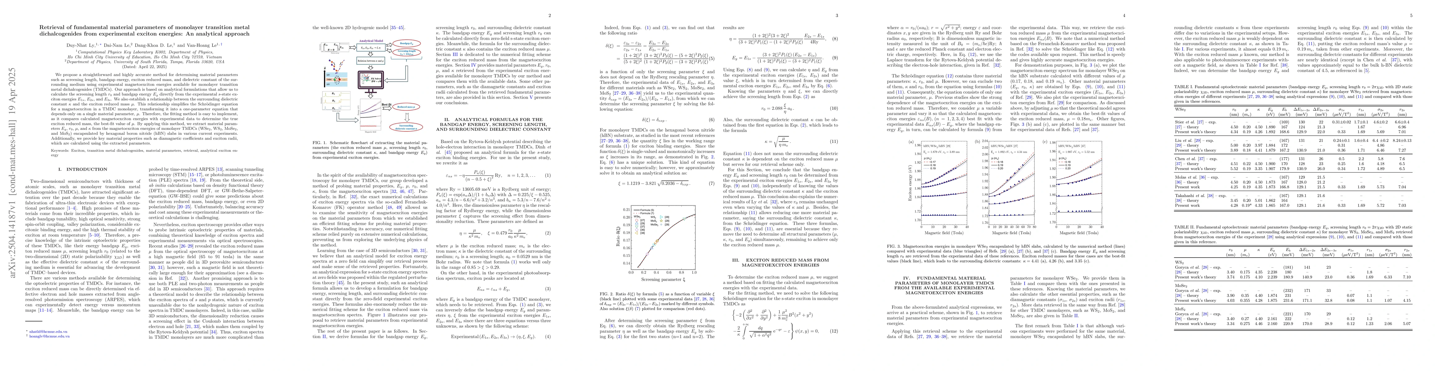 Researchers develop a method to calculate fundamental material parameters of monolayer transition metal dichalcogenides from experimental magnetoexciton energies, providing accurate values for screening length, bandgap energy, exciton reduced mass, and dielectric constant.