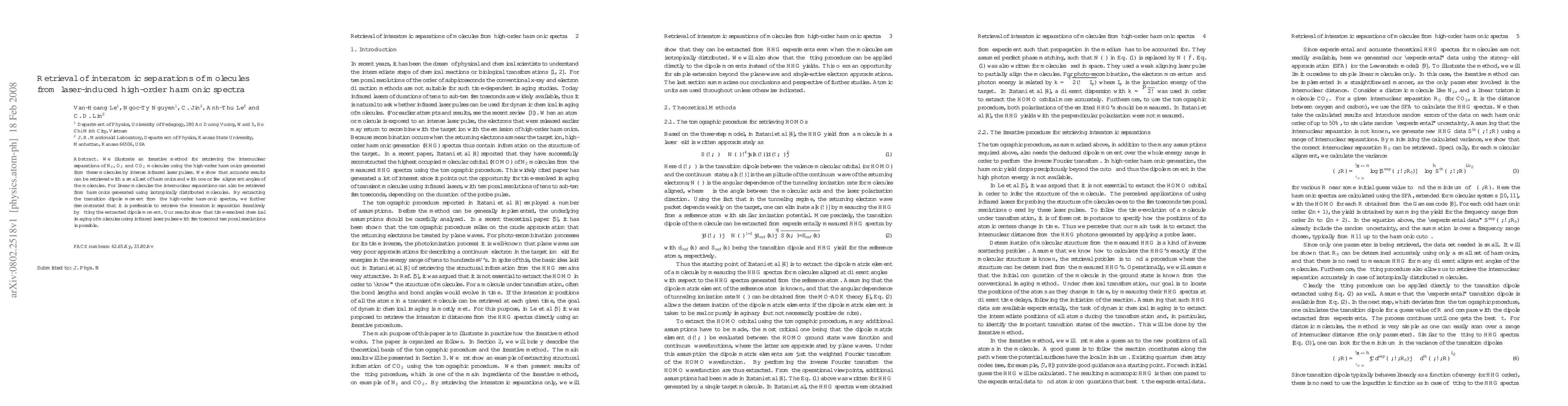 This paper presents an iterative method to retrieve internuclear separations of N$_2$, O$_2$, and CO$_2$ molecules using high-order harmonics generated by intense infrared laser pulses. Accurate separations can be obtained with minimal harmonic data and alignment angles, enabling time-resolved chemical imaging of molecules with femtosecond resolution.