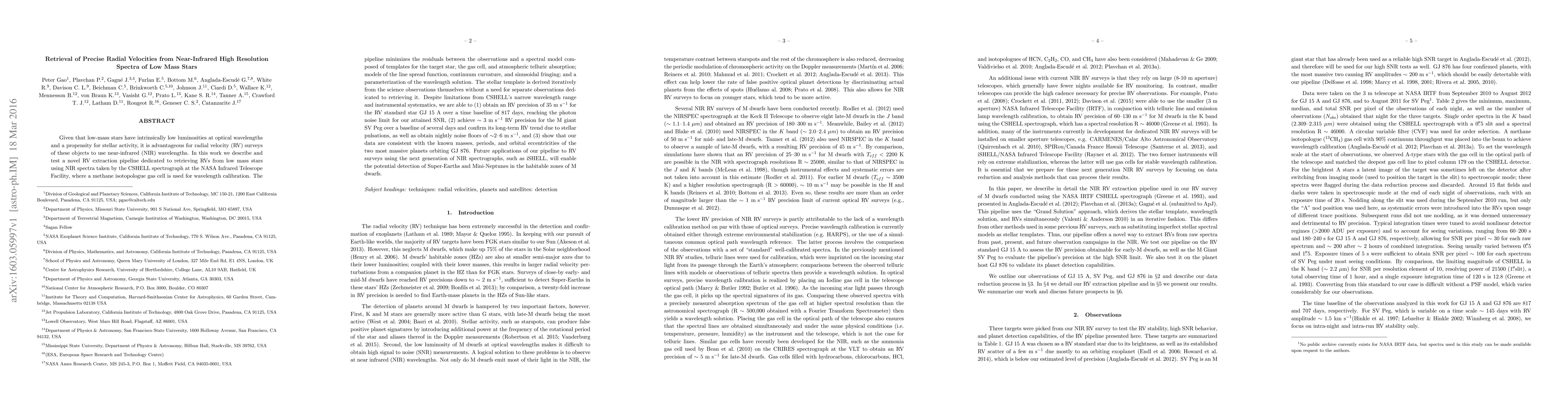 This paper presents a novel pipeline for extracting precise radial velocities from near-infrared high-resolution spectra of low-mass stars, achieving 35 m/s precision for GJ 15 A and ~3 m/s for SV Peg, confirming long-term RV trends and consistency with known planetary parameters. Future applications to next-gen NIR spectrographs promise detection of habitable zone Super-Earths and Mini-Neptunes.