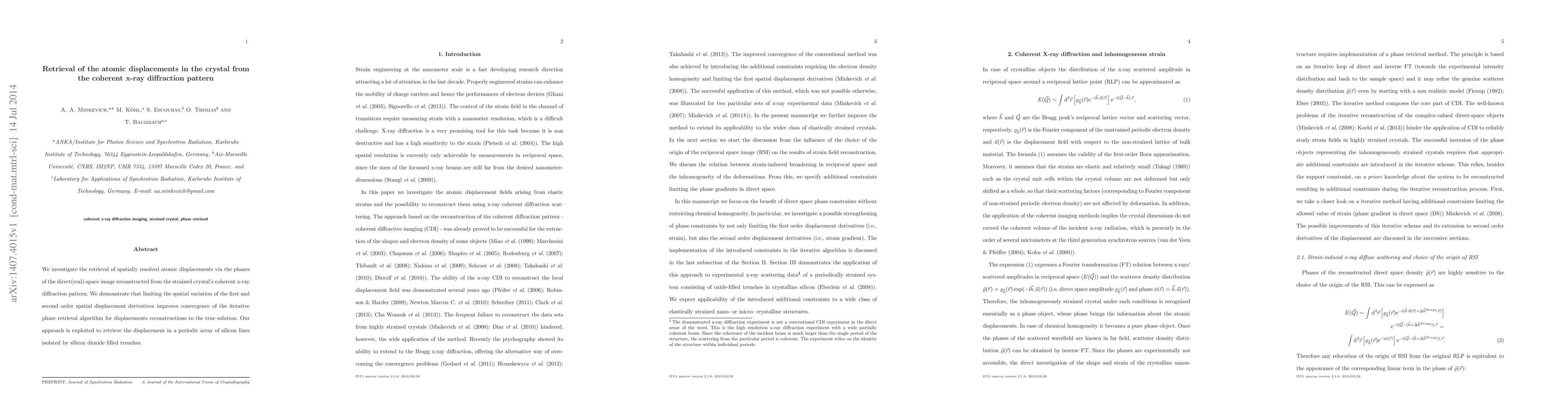 Researchers developed a method to retrieve atomic displacements in crystals from x-ray diffraction patterns, improving convergence of the phase retrieval algorithm with limited spatial variation.