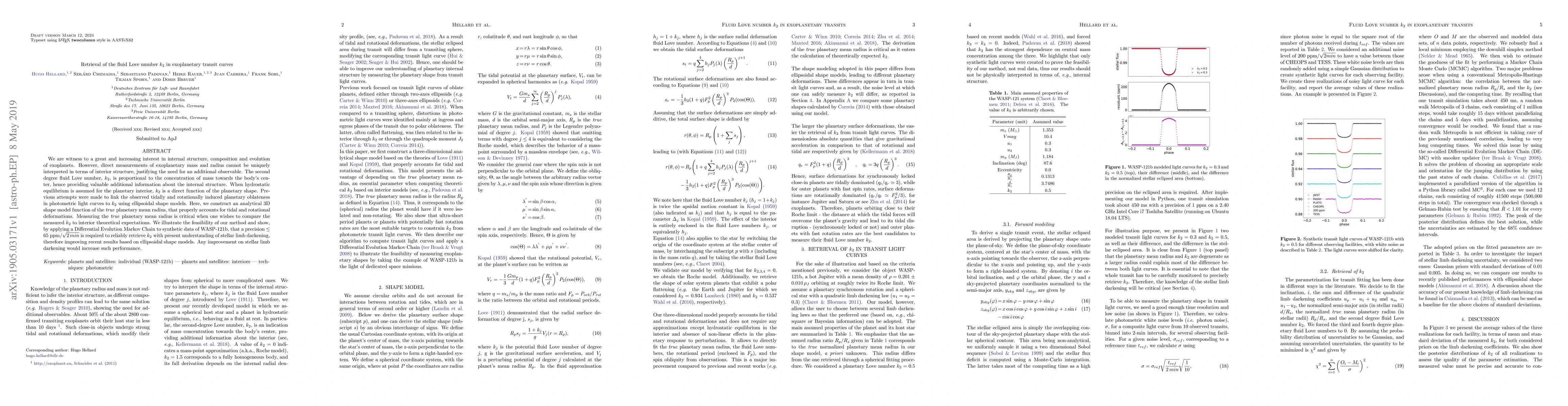 We are witness to a great and increasing interest in internal structure, composition and evolution of exoplanets. However, direct measurements of exoplanetary mass and radius cannot be uniquely interpreted in terms of interior structure, justifying the need for an additional observable. The second degree fluid Love number, $k_2$, is proportional to the concentration of mass towards the body's center, hence providing valuable additional information about the internal structure. When hydrostatic equilibrium is assumed for the planetary interior, $k_2$ is a direct function of the planetary shape. Previous attempts were made to link the observed tidally and rotationally induced planetary oblateness in photometric light curves to $k_2$ using ellipsoidal shape models. Here, we construct an analytical 3D shape model function of the true planetary mean radius, that properly accounts for tidal and rotational deformations. Measuring the true planetary mean radius is critical when one wishes to compare the measured $k_2$ to interior theoretical expectations. We illustrate the feasibility of our method and show, by applying a Differential Evolution Markov Chain to synthetic data of WASP-121b, that a precision $\leq$ 65 ppm/$\sqrt{2\,min}$ is required to reliably retrieve $k_2$ with present understanding of stellar limb darkening, therefore improving recent results based on ellipsoidal shape models. Any improvement on stellar limb darkening would increase such performance.