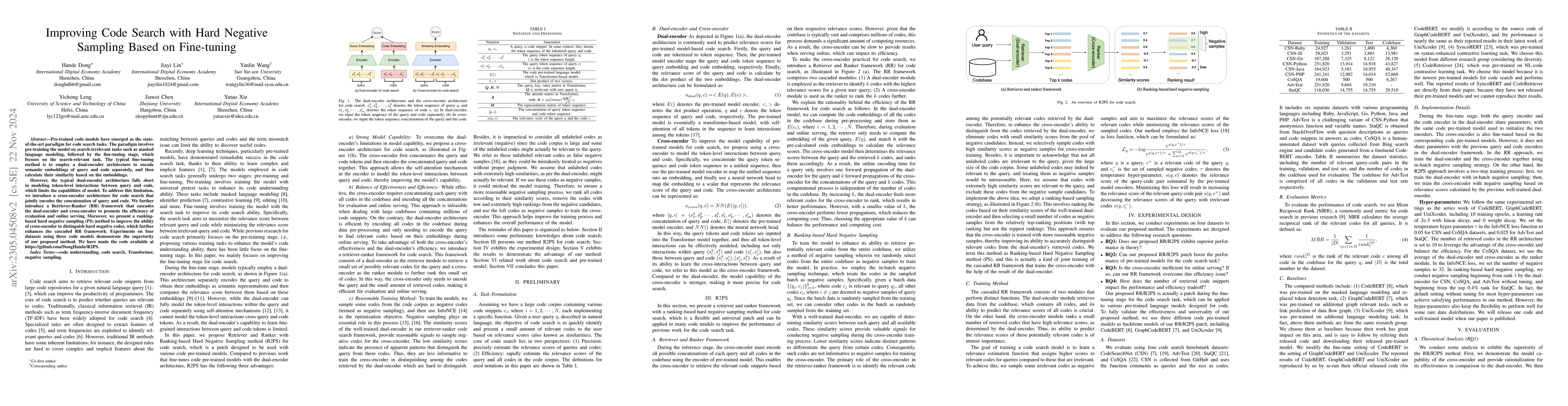 This paper introduces a Retriever-Ranker framework with a cross-encoder architecture and probabilistic hard negative sampling to enhance code search using pretrained language models. The proposed method improves the model's ability to distinguish hard negatives and outperforms existing dual-encoder approaches on multiple datasets.