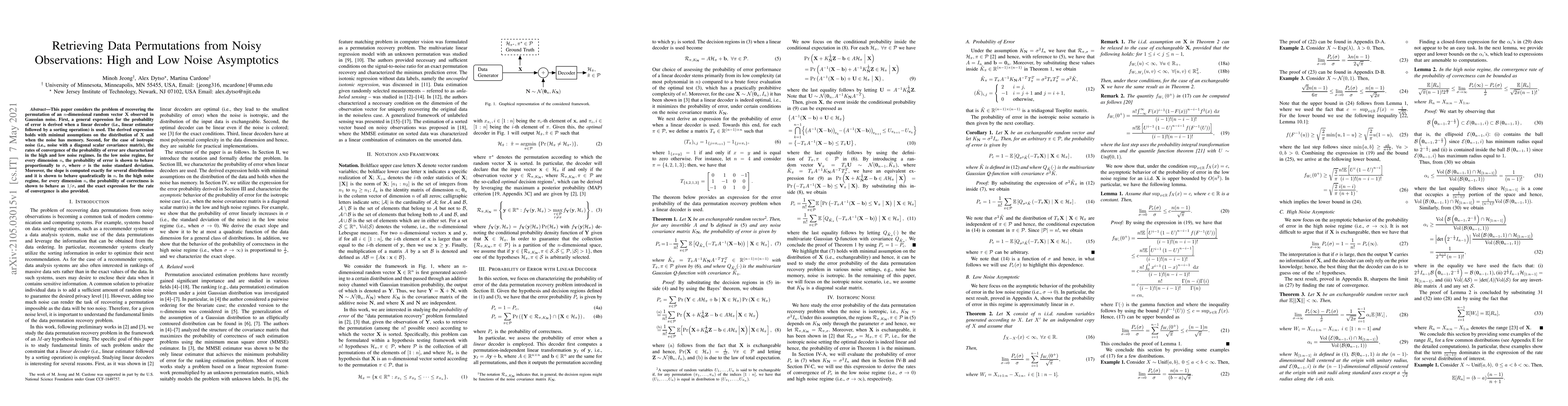 This paper considers the problem of recovering the permutation of an n-dimensional random vector X observed in Gaussian noise. First, a general expression for the probability of error is derived when a linear decoder (i.e., linear estimator followed by a sorting operation) is used. The derived expression holds with minimal assumptions on the distribution of X and when the noise has memory. Second, for the case of isotropic noise (i.e., noise with a diagonal scalar covariance matrix), the rates of convergence of the probability of error are characterized in the high and low noise regimes. In the low noise regime, for every dimension n, the probability of error is shown to behave proportionally to {\sigma}, where {\sigma} is the noise standard deviation. Moreover, the slope is computed exactly for several distributions and it is shown to behave quadratically in n. In the high noise regime, for every dimension n, the probability of correctness is shown to behave as 1/{\sigma}, and the exact expression for the rate of convergence is also provided.