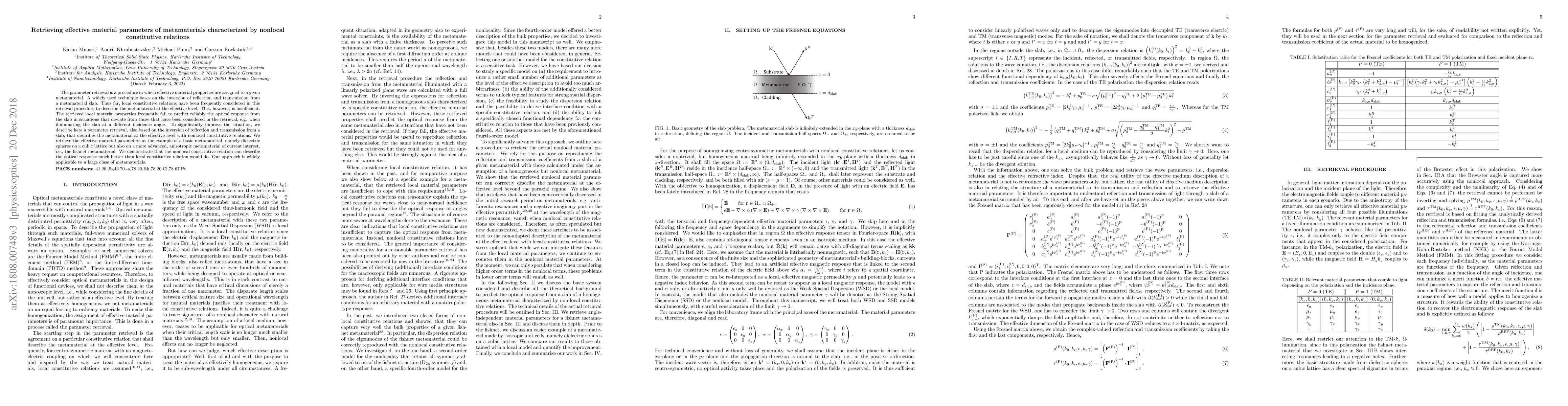 This paper proposes a method for retrieving effective material parameters of metamaterials using nonlocal constitutive relations, improving the prediction of optical responses beyond the limitations of local relations. The technique is demonstrated on a fishnet metamaterial, showing superior performance in describing optical behavior.