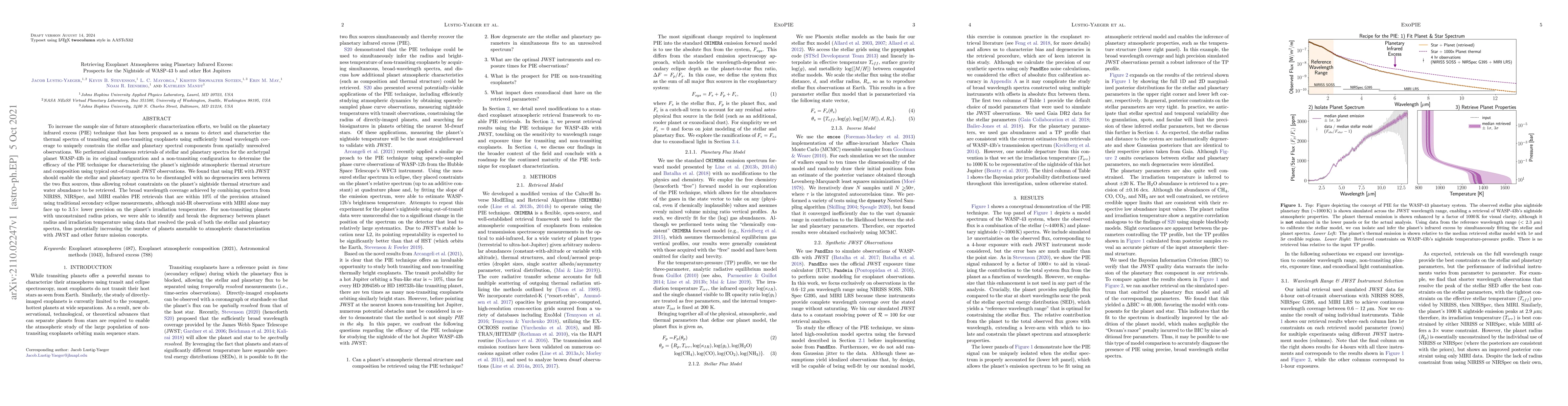 To increase the sample size of future atmospheric characterization efforts, we build on the planetary infrared excess (PIE) technique that has been proposed as a means to detect and characterize the thermal spectra of transiting and non-transiting exoplanets using sufficiently broad wavelength coverage to uniquely constrain the stellar and planetary spectral components from spatially unresolved observations. We performed simultaneous retrievals of stellar and planetary spectra for the archetypal planet WASP-43b in its original configuration and a non-transiting configuration to determine the efficacy of the PIE technique for characterizing the planet's nightside atmospheric thermal structure and composition using typical out-of-transit JWST observations. We found that using PIE with JWST should enable the stellar and planetary spectra to be disentangled with no degeneracies seen between the two flux sources, thus allowing robust constraints on the planet's nightside thermal structure and water abundance to be retrieved. The broad wavelength coverage achieved by combining spectra from NIRISS, NIRSpec, and MIRI enables PIE retrievals that are within 10% of the precision attained using traditional secondary eclipse measurements, although mid-IR observations with MIRI alone may face up to 3.5 times lower precision on the planet's irradiation temperature. For non-transiting planets with unconstrained radius priors, we were able to identify and break the degeneracy between planet radius and irradiation temperature using data that resolved the peak of both the stellar and planetary spectra, thus potentially increasing the number of planets amenable to atmospheric characterization with JWST and other future mission concepts.