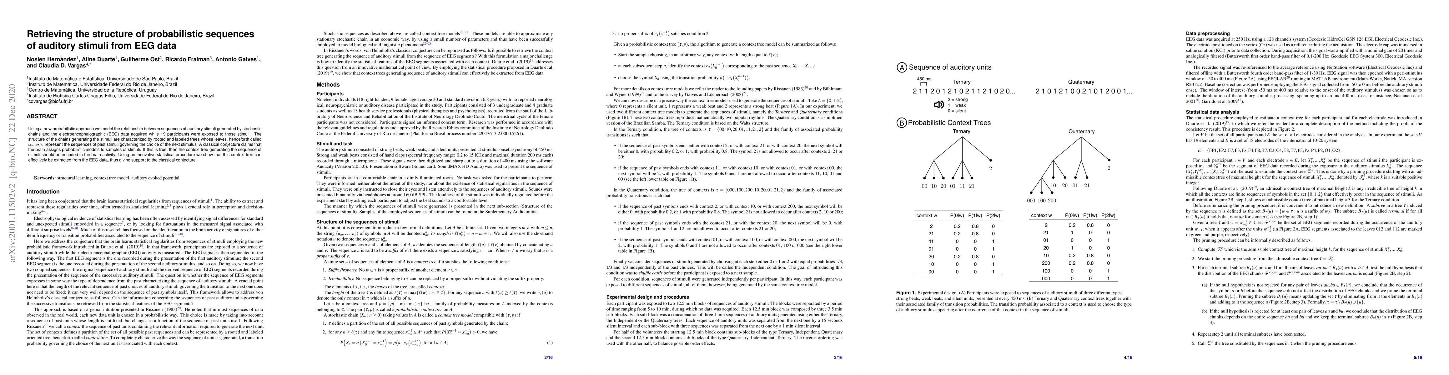This paper models the relationship between stochastic auditory stimulus sequences and EEG data, demonstrating that the brain's activity encodes the structure of these sequences. An innovative statistical method extracts the context tree from EEG data, supporting the conjecture that the brain assigns probabilistic models to stimulus samples.