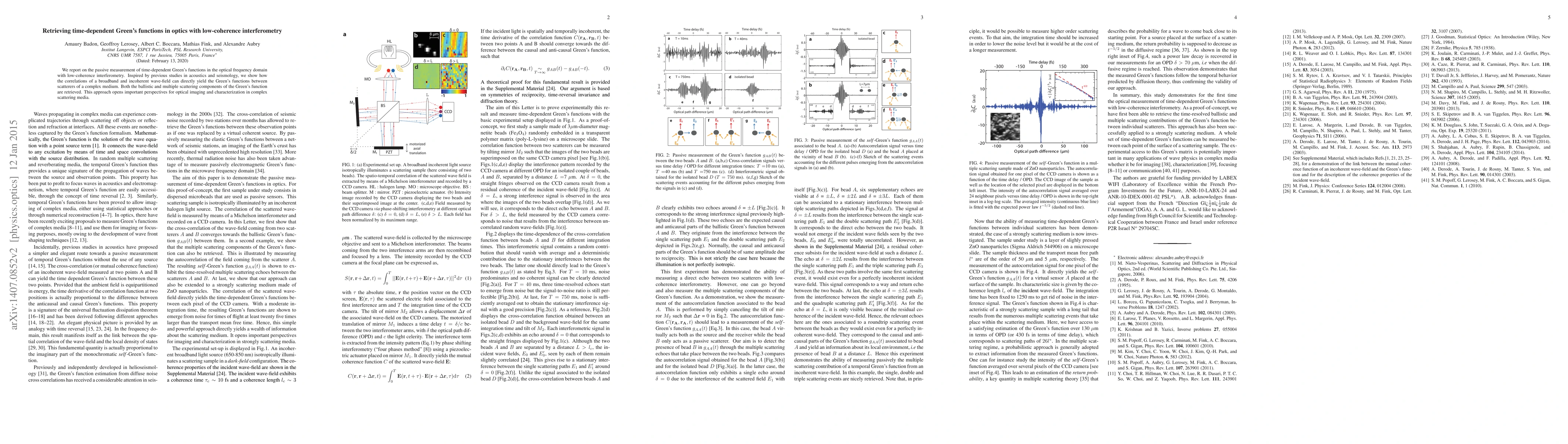 This paper presents a method for measuring time-dependent Green's functions in optics using low-coherence interferometry, inspired by techniques used in acoustics and seismology. The technique retrieves both ballistic and multiple scattering components, offering new insights for optical imaging in complex media.