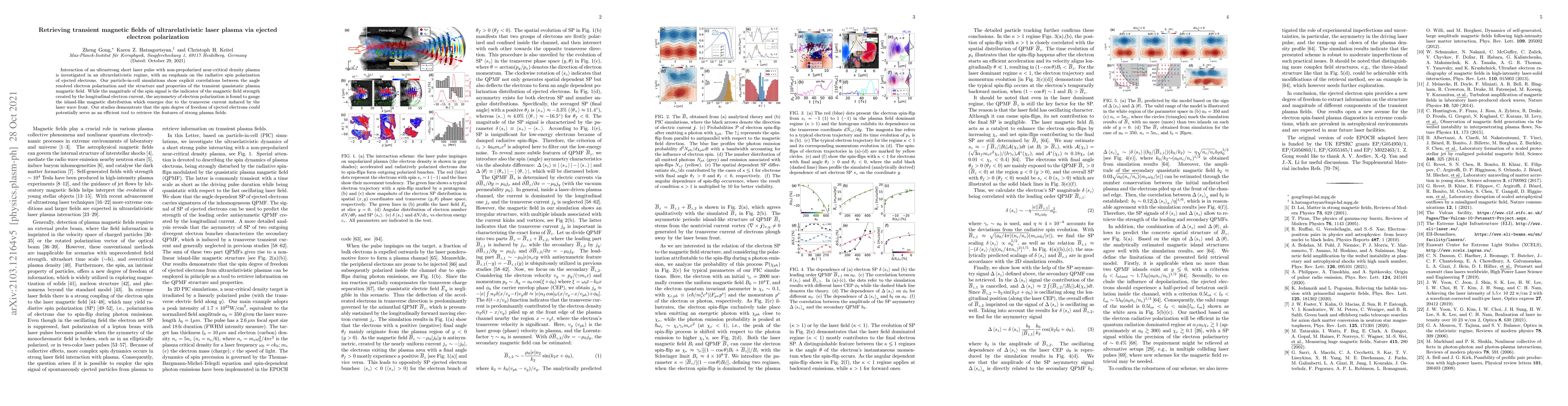 This paper investigates the interaction of ultrarelativistic laser pulses with near-critical density plasma, focusing on the radiative spin polarization of ejected electrons. The study reveals correlations between electron polarization and the transient magnetic field structure, suggesting that ejected electron polarization can be used to retrieve features of strong plasma fields.