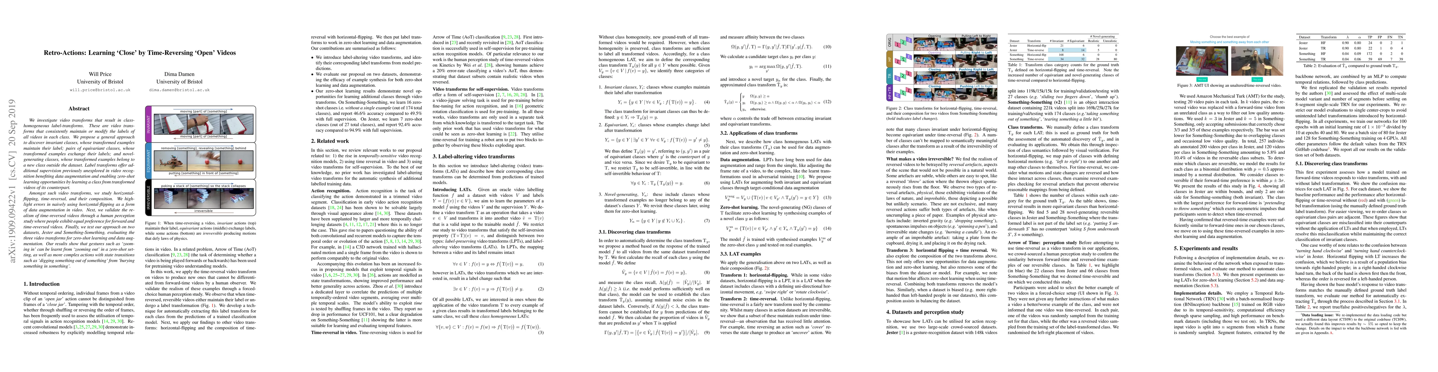 Researchers propose a method to learn from video transforms that reverse actions, such as time-reversing 'open' videos to create 'close' versions, for zero-shot learning and data augmentation in video recognition.