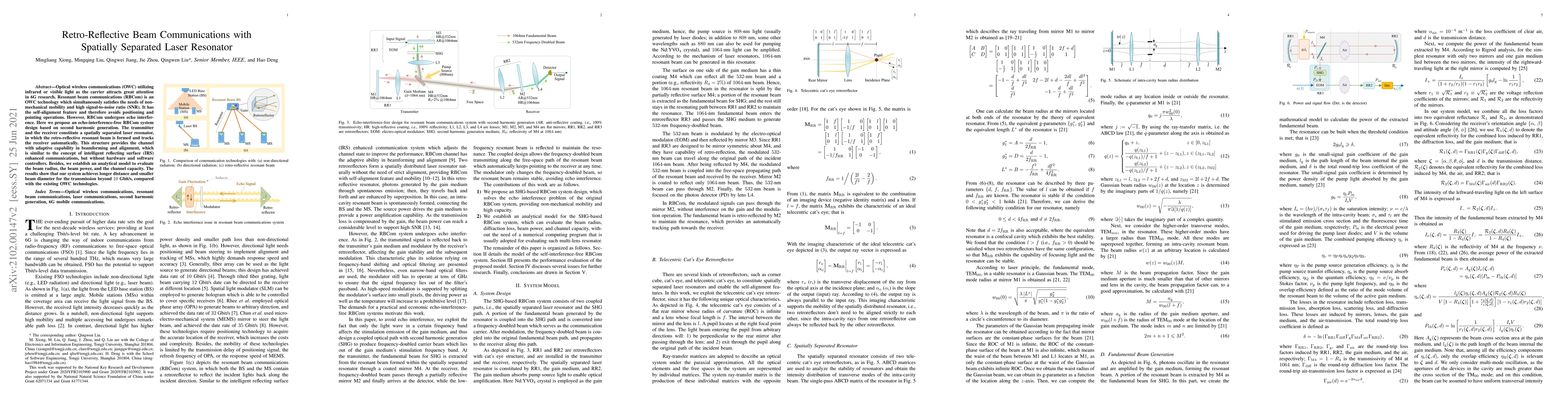 Optical wireless communications (OWC) utilizing infrared or visible light as the carrier attracts great attention in 6G research. Resonant beam communications (RBCom) is an OWC technology which simultaneously satisfies the needs of non-mechanical mobility and high signal-to-noise ratio~(SNR). It has the self-alignment feature and therefore avoids positioning and pointing operations. However, RBCom undergoes echo interference. Here we propose an echo-interference-free RBCom system design based on second harmonic generation. The transmitter and the receiver constitute a spatially separated laser resonator, in which the retro-reflective resonant beam is formed and tracks the receiver automatically. This structure provides the channel with adaptive capability in beamforming and alignment, which is similar to the concept of intelligent reflecting surface (IRS) enhanced communications, but without hardware and software controllers. Besides, we establish an analytical model to evaluate the beam radius, the beam power, and the channel capacity. The results show that our system achieves longer distance and smaller beam diameter for the transmission beyond 10 Gbit/s, compared with the existing OWC technologies.