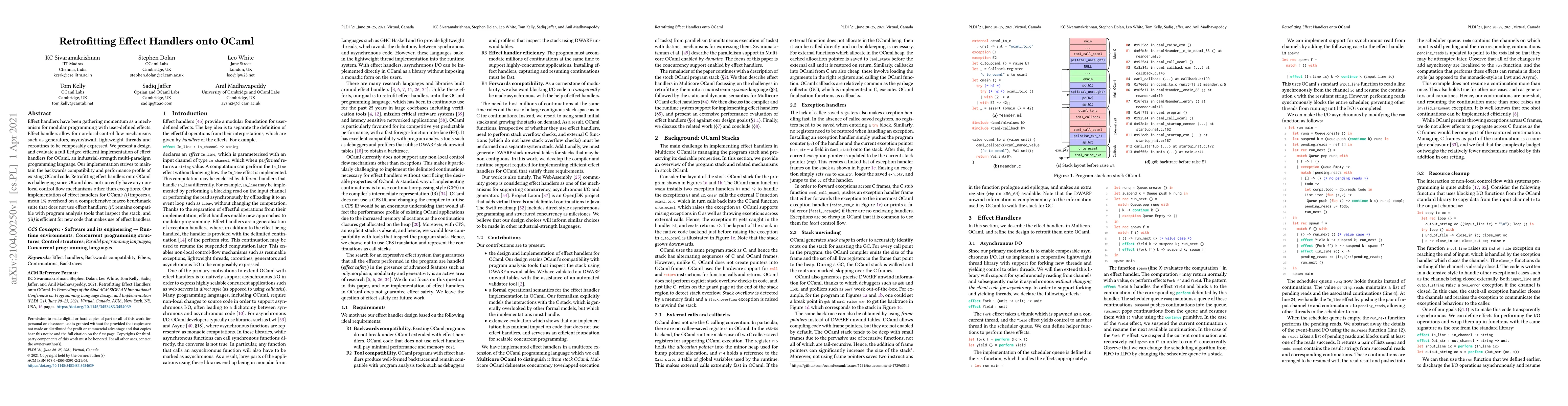 This paper presents a design and implementation of effect handlers for OCaml, enabling modular programming with non-local control flows like generators and async/await. The implementation maintains backward compatibility and performance, imposing a minimal 1% overhead on existing code while remaining efficient for new effect-handler utilizing code.