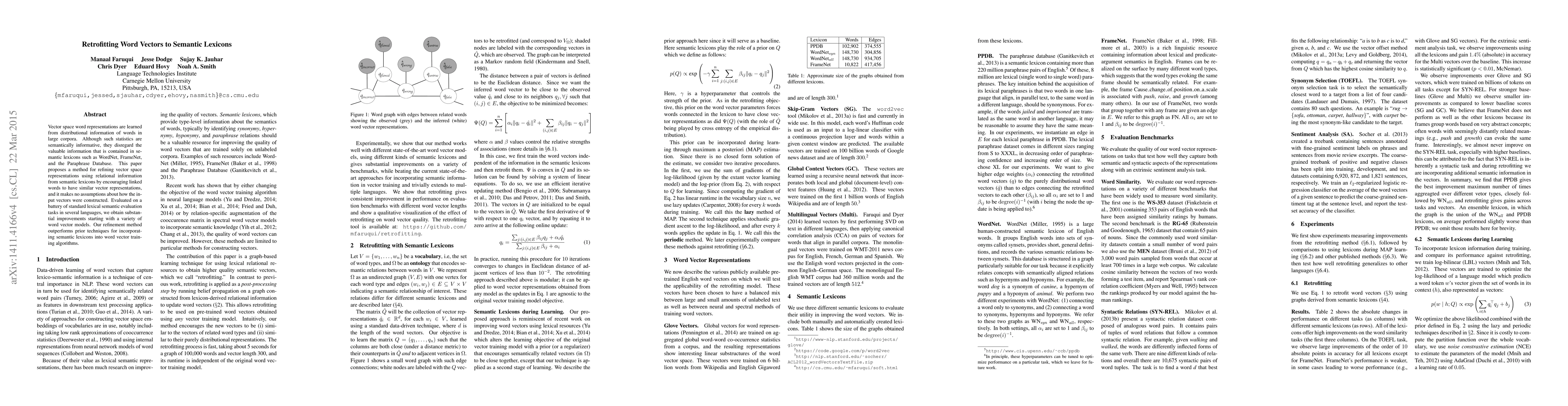 Their approach refines word vectors by encouraging linked words to share similar representations, outperforming prior techniques that incorporated semantic lexicons into word vector training algorithms.