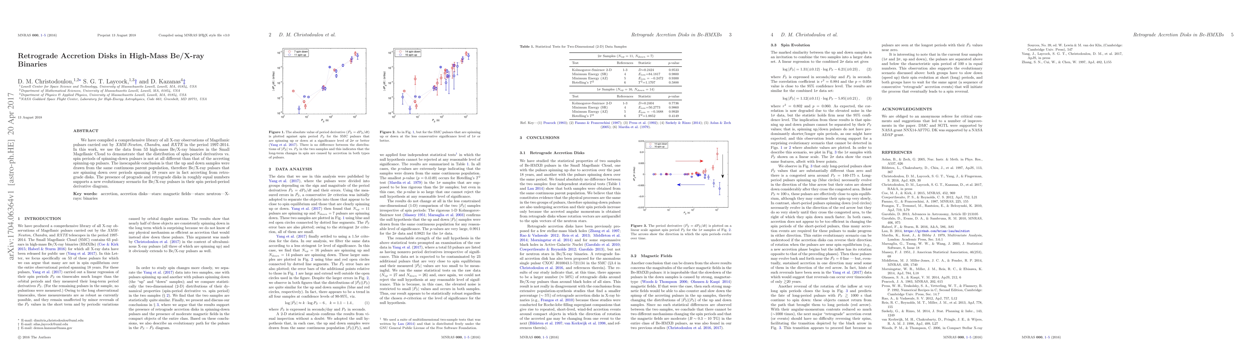 This study compiles X-ray observations from 1997-2014 of high-mass Be/X-ray binaries in the Small Magellanic Cloud, revealing that spinning-down pulsars accrete from retrograde disks, suggesting a continuous parent population. This finding supports a new evolutionary model for these pulsars.
