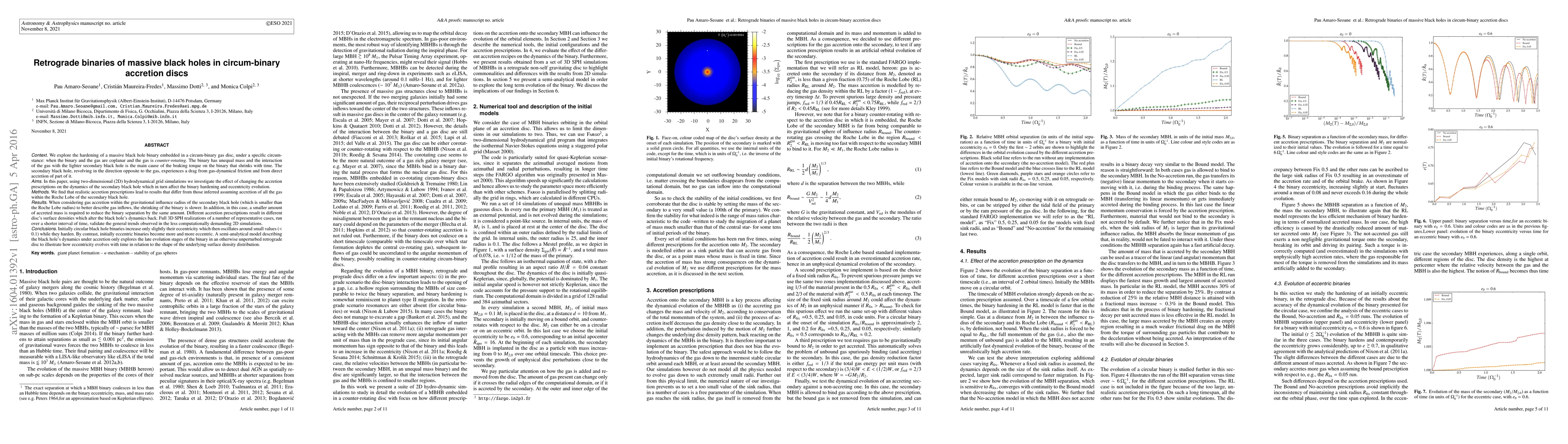 We explore the hardening of a massive black hole binary embedded in a circum-binary gas disc when the binary and the gas are coplanar and the gas is counter-rotating. The secondary black hole, revolving in the direction opposite to the gas, experiences a drag from gas-dynamical friction and from direct accretion of part of it. Using two-dimensional (2D) hydrodynamical grid simulations we investigate the effect of changing the accretion prescriptions on the dynamics of the secondary black hole which in turn affect the binary hardening and eccentricity evolution. We find that realistic accretion prescriptions lead to results that differ from those inferred assuming accretion of all the gas within the Roche Lobe of the secondary black hole. Different accretion prescriptions result in different disc's surface densities which alter the black hole's dynamics back. Full 3D SPH realizations of a number of representative cases, run over a shorter interval of time, validate the general trends observed in the less computationally demanding 2D simulations. Initially circular black hole binaries increase only slightly their eccentricity which then oscillates around small values (<0.1) while they harden. By contrast, initially eccentric binaries become more and more eccentric. A semi-analytical model describing the black hole's dynamics under accretion only explores the late evolution stages of the binary in an otherwise unperturbed retrograde disc to illustrate how eccentricity evolves with time in relation to the shape of the underlying surface density distribution.