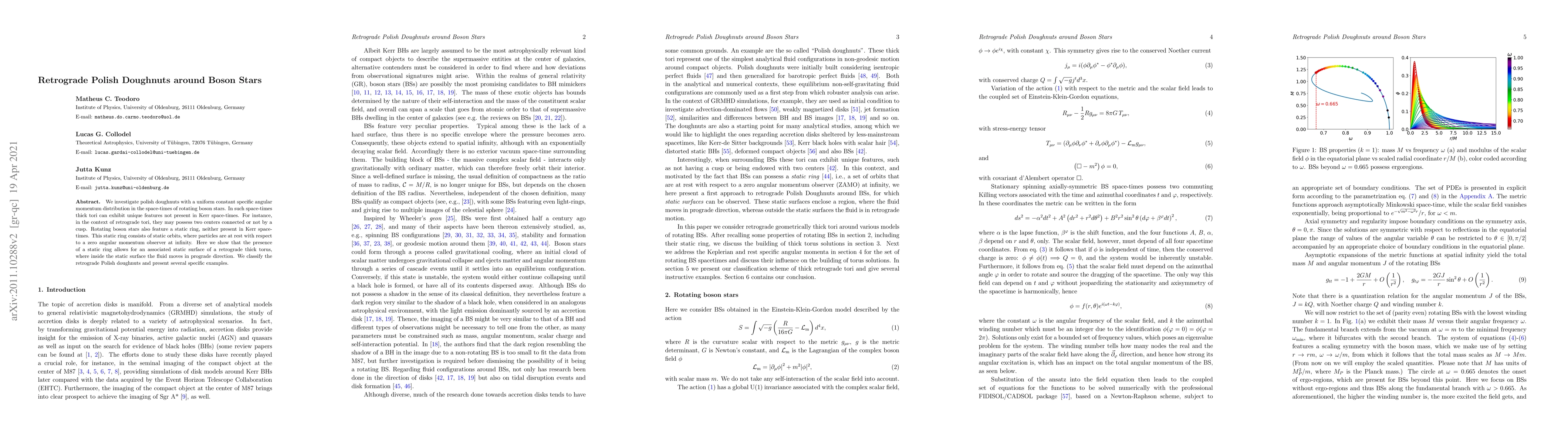 This paper explores the unique features of retrograde Polish doughnuts in the space-times of rotating boson stars, revealing the presence of a static ring and associated static surfaces that allow fluid to move in prograde directions within retrograde thick tori. Specific examples and classifications of these retrograde Polish doughnuts are provided.