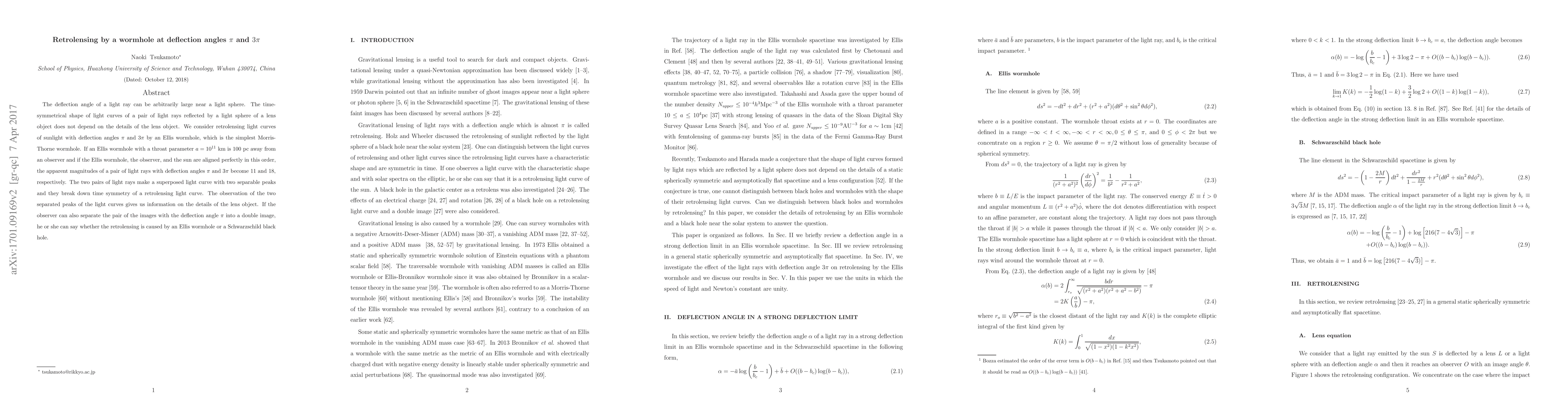 The deflection angle of a light ray can be arbitrarily large near a light sphere. The time-symmetrical shape of light curves of a pair of light rays reflected by a light sphere of a lens object does not depend on the details of the lens object. We consider retrolensing light curves of sunlight with deflection angles $\pi$ and $3\pi$ by an Ellis wormhole, which is the simplest Morris-Thorne wormhole. If an Ellis wormhole with a throat parameter $a=10^{11}$ km is $100$ pc away from an observer and if the Ellis wormhole, the observer, and the sun are aligned perfectly in this order, the apparent magnitudes of a pair of light rays with deflection angles $\pi$ and $3\pi$ become $11$ and $18$, respectively. The two pairs of light rays make a superposed light curve with two separable peaks and they break down time symmetry of a retrolensing light curve. The observation of the two separated peaks of the light curves gives us information on the details of the lens object. If the observer can also separate the pair of the images with the deflection angle $\pi$ into a double image, he or she can say whether the retrolensing is caused by an Ellis wormhole or a Schwarzschild black hole.