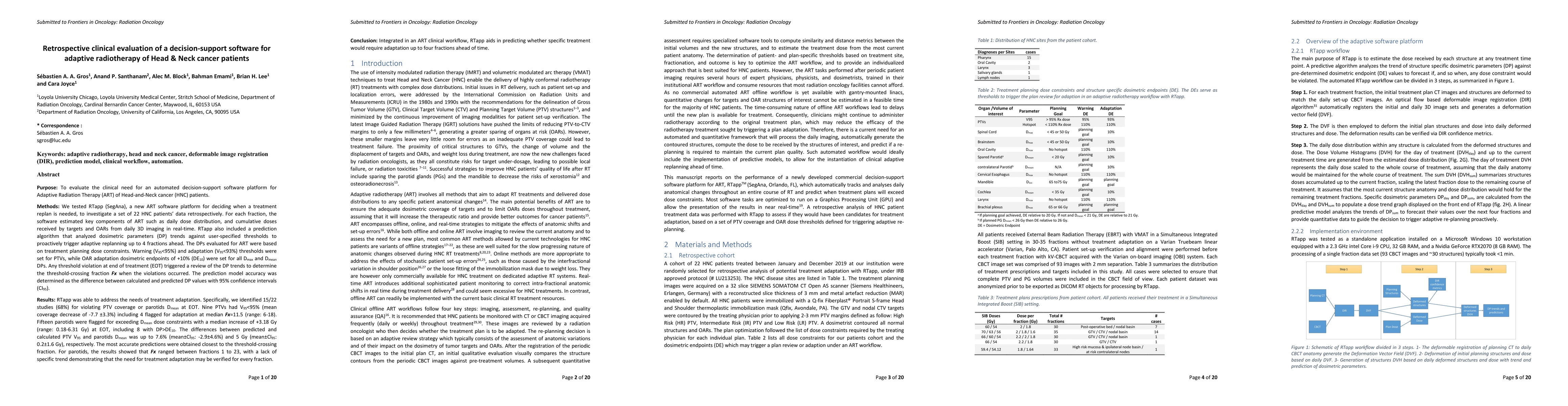 This paper evaluates RTapp, a decision-support software for Adaptive Radiotherapy (ART) in Head & Neck cancer patients, showing it can predict treatment adaptation needs up to 4 fractions ahead. The study found that 68% of the 22 patients had dosimetric endpoint violations at treatment end, indicating RTapp's potential to improve treatment precision.