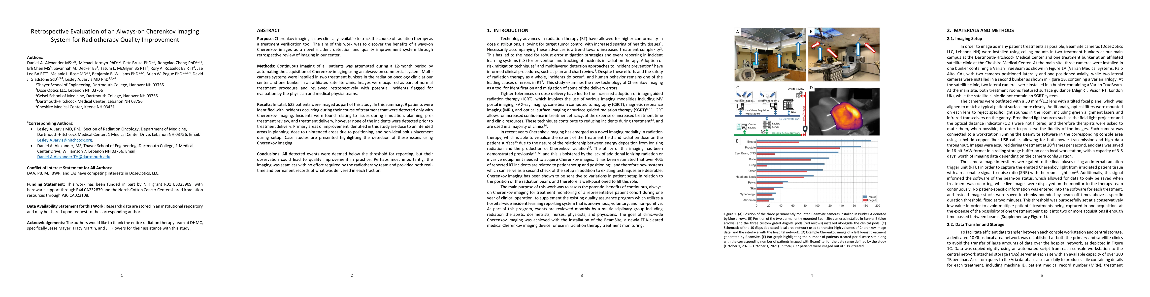 A 12-month retrospective study found that an always-on Cherenkov imaging system detected 9 incidents in radiation therapy that would have gone unnoticed without it, highlighting improvements in planning and treatment delivery.