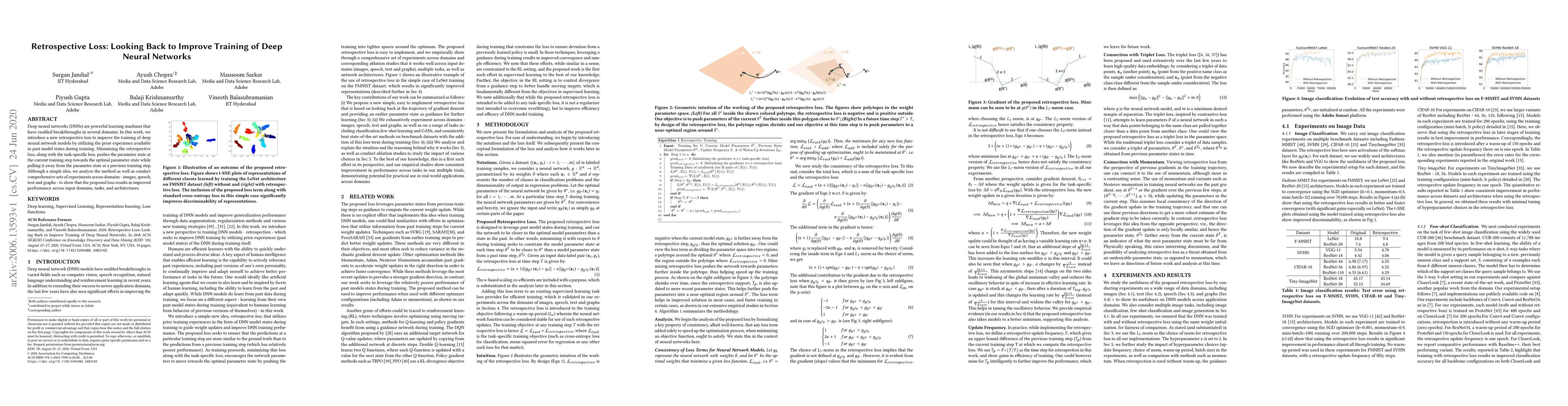 This paper introduces a novel retrospective loss to enhance the training of deep neural networks by leveraging prior model states. Experiments across various domains demonstrate that minimizing this loss alongside task-specific loss improves model performance.