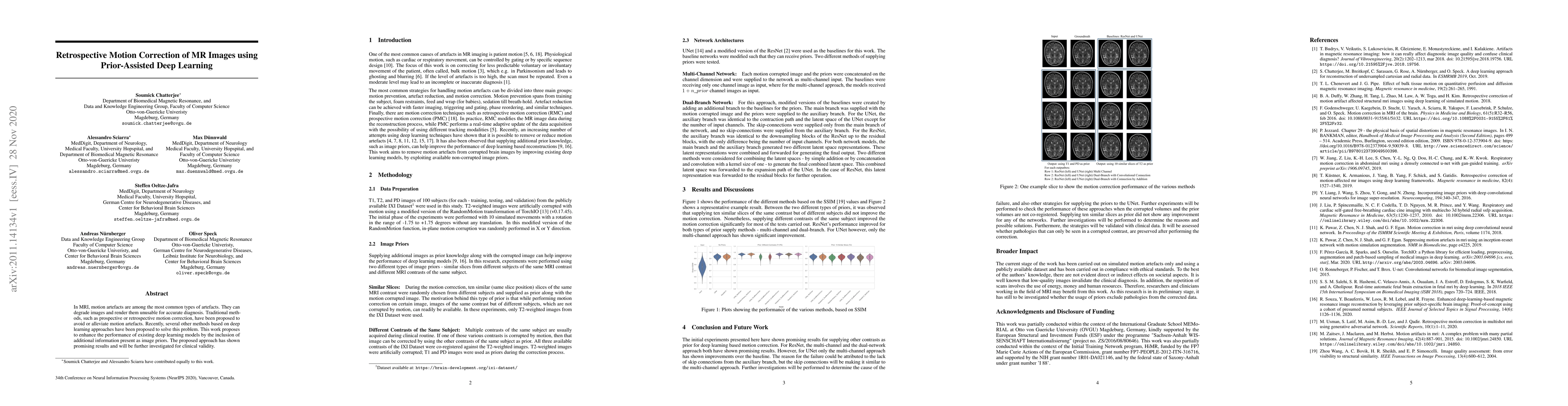 This paper proposes a deep learning method for retrospective motion correction in MRI, utilizing image priors to enhance model performance and improve the accuracy of diagnosis by reducing motion artefacts. The approach shows promising results and warrants further investigation for its clinical applicability.