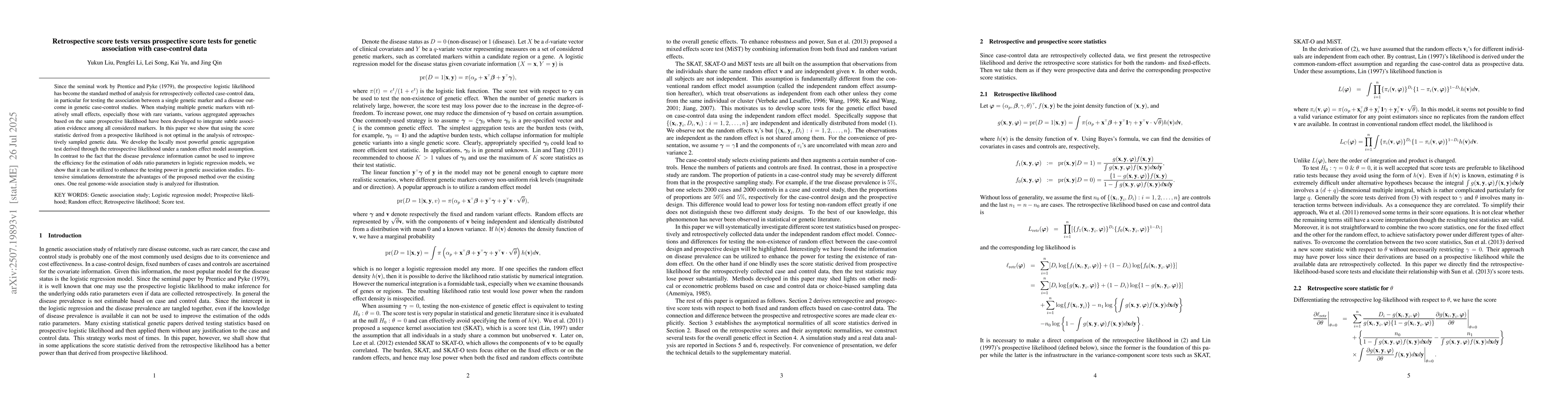 Since the seminal work by Prentice and Pyke (1979), the prospective logistic likelihood has become the standard method of analysis for retrospectively collected case-control data, in particular for testing the association between a single genetic marker and a disease outcome in genetic case-control studies. When studying multiple genetic markers with relatively small effects, especially those with rare variants, various aggregated approaches based on the same prospective likelihood have been developed to integrate subtle association evidence among all considered markers. In this paper we show that using the score statistic derived from a prospective likelihood is not optimal in the analysis of retrospectively sampled genetic data. We develop the locally most powerful genetic aggregation test derived through the retrospective likelihood under a random effect model assumption. In contrast to the fact that the disease prevalence information cannot be used to improve the efficiency for the estimation of odds ratio parameters in logistic regression models, we show that it can be utilized to enhance the testing power in genetic association studies. Extensive simulations demonstrate the advantages of the proposed method over the existing ones. One real genome-wide association study is analyzed for illustration.