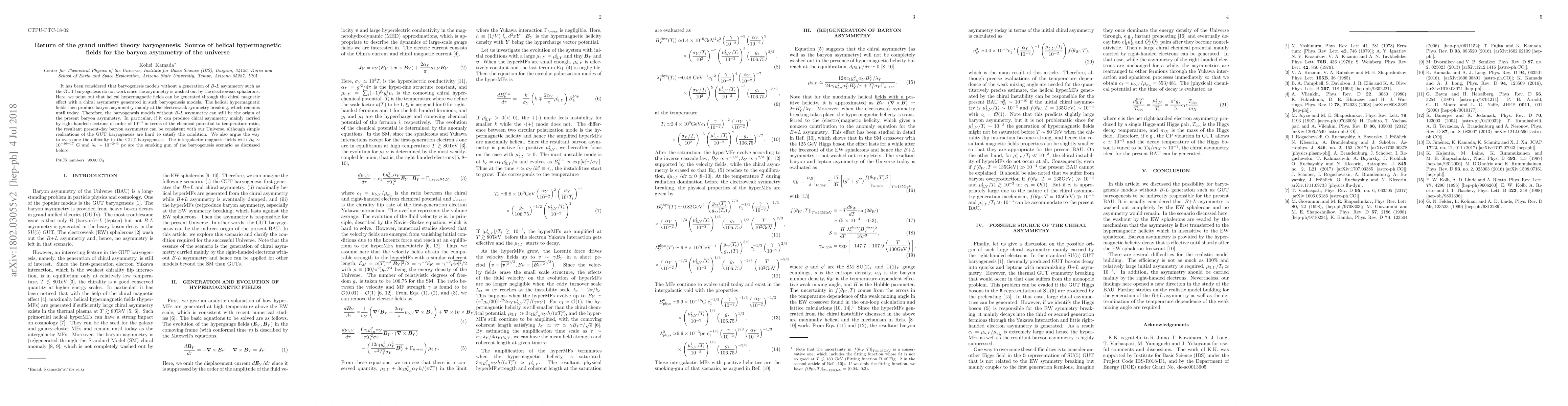This paper proposes that helical hypermagnetic fields generated via the chiral magnetic effect in grand unified theory (GUT) baryogenesis can produce baryon asymmetry, overcoming the challenge that $B$-$L$ asymmetry is typically required. It suggests that these fields can maintain baryon asymmetry until today, offering a viable alternative to traditional models.