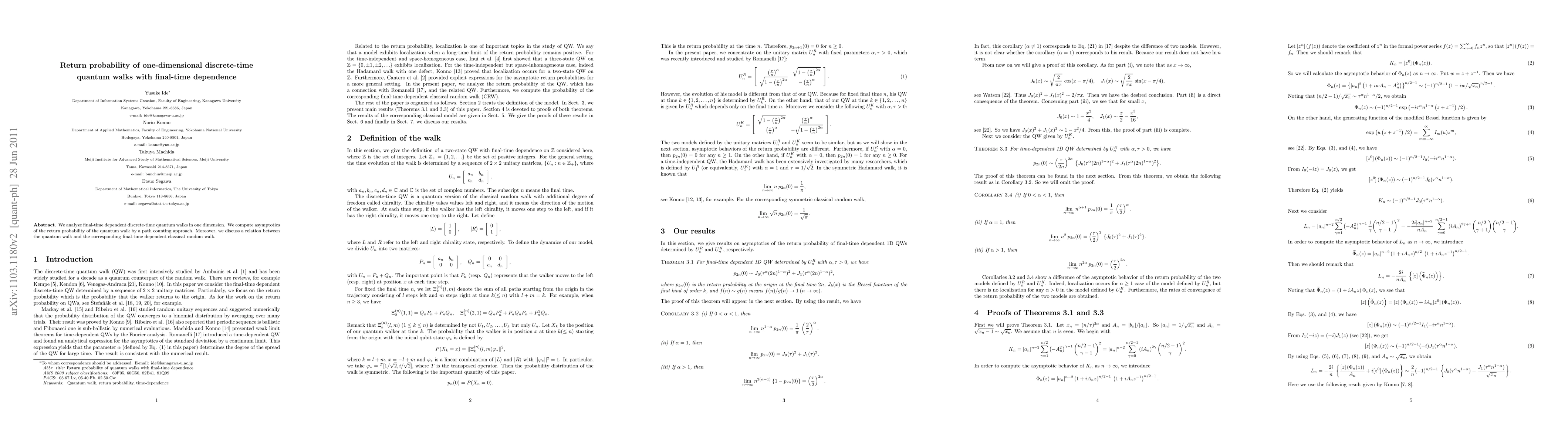 We analyze final-time dependent discrete-time quantum walks in one dimension. We compute asymptotics of the return probability of the quantum walk by a path counting approach. Moreover, we discuss a relation between the quantum walk and the corresponding final-time dependent classical random walk.