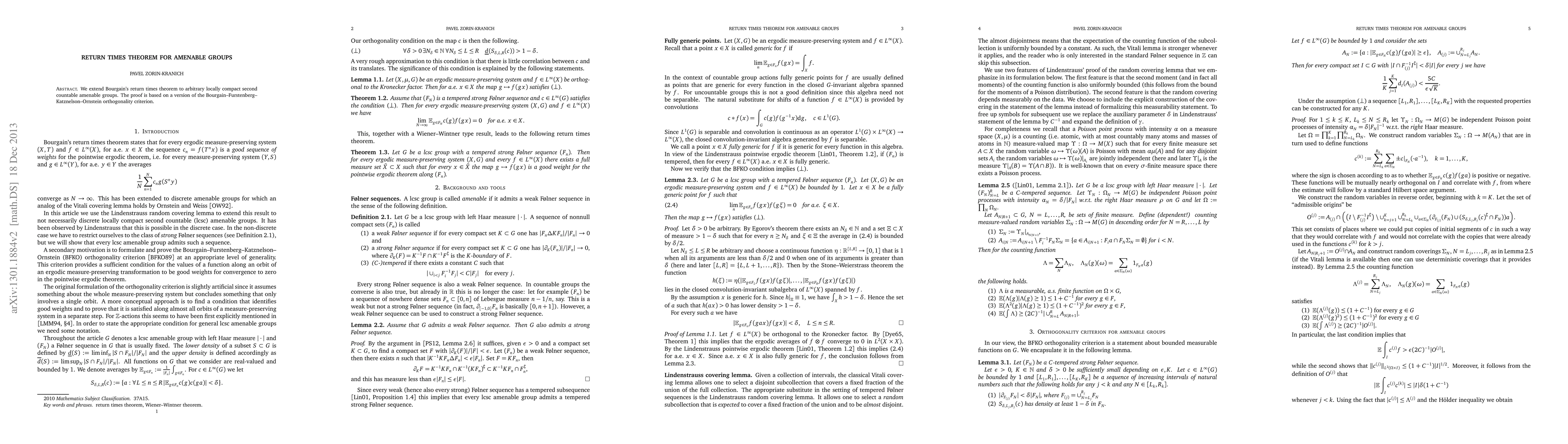 Summary: This paper extends Bourgain's return times theorem to locally compact, second countable amenable groups, utilizing a modified Bourgain-Furstenberg-Katznelson-Ornstein orthogonality criterion for the proof.