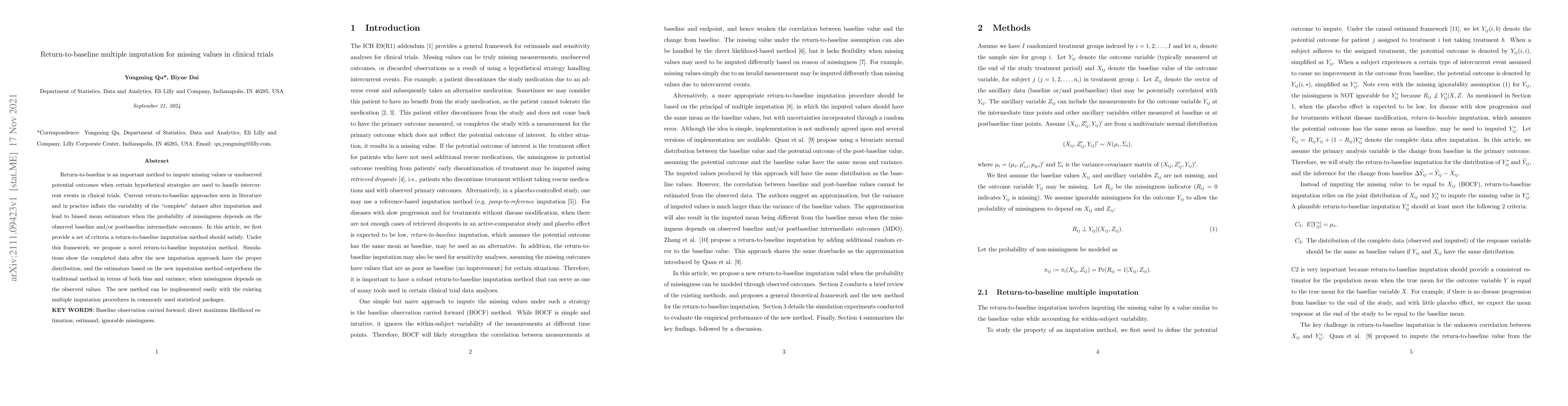 A new method for return-to-baseline imputation in clinical trials is proposed, which outperforms existing methods and can be easily implemented with existing multiple imputation packages.