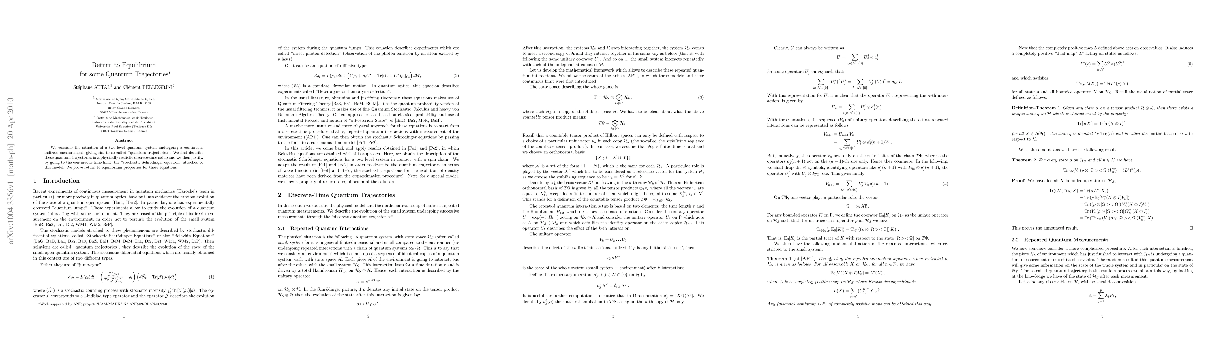We consider the situation of a two-level quantum system undergoing a continuous indirect measurement, giving rise to so-called "quantum trajectories". We first describe these quantum trajectories in a physically realistic discrete-time setup and we then justify, by going to the continuous-time limit, the "stochastic Schr\"odinger equation" attached to this model. We prove return to equilibrium properties for these equations.