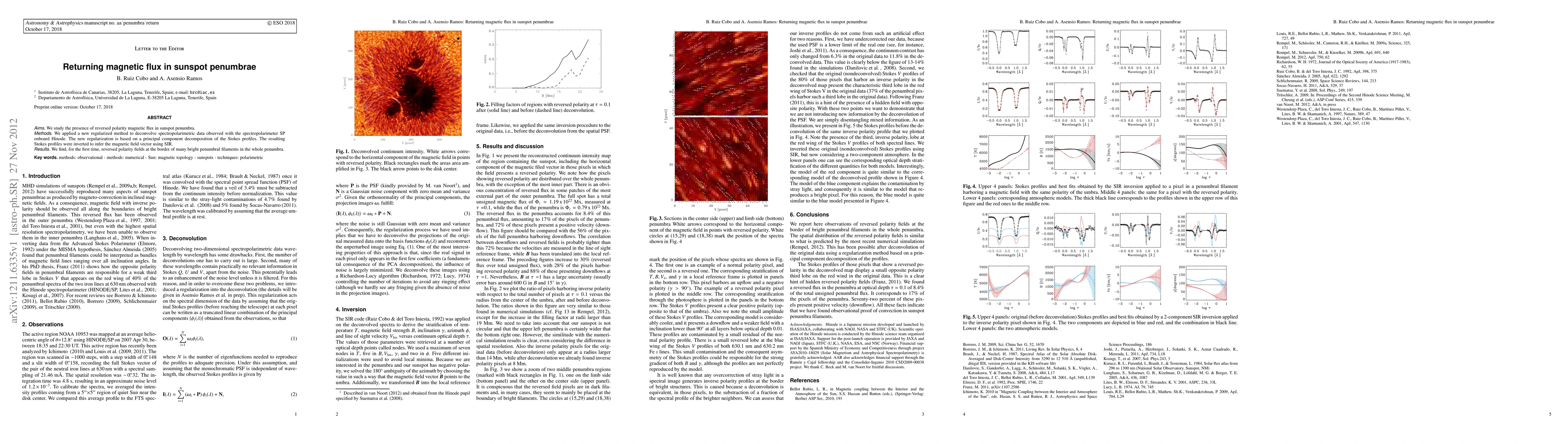 This study employs a novel regularized method to analyze sunspot penumbrae, revealing, for the first time, reversed polarity magnetic flux at the borders of bright penumbral filaments using data from Hinode's SP spectropolarimeter. The method leverages principal component decomposition and SIR inversion to achieve these findings.
