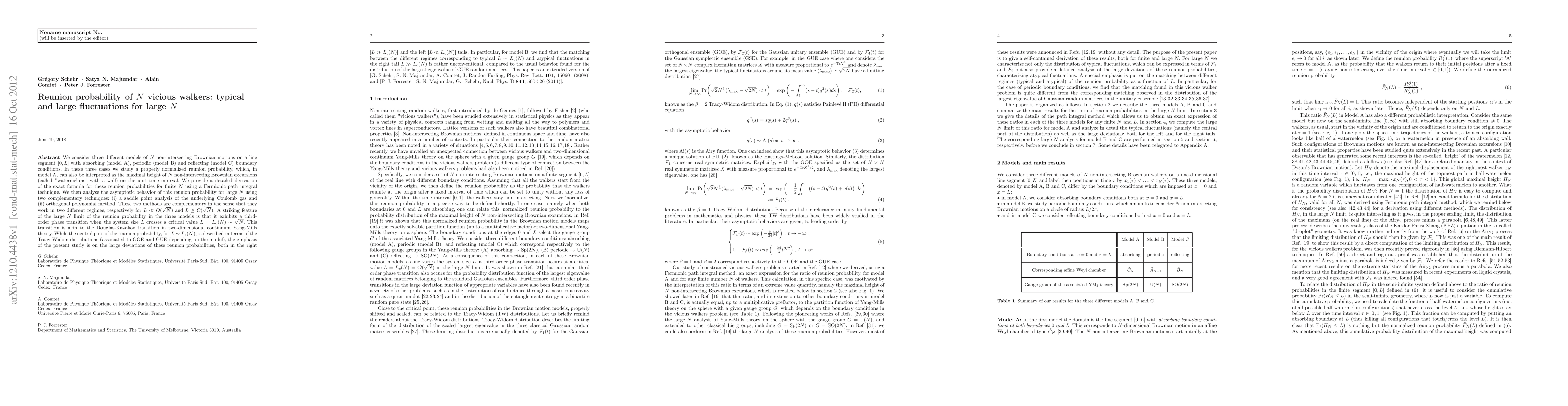 We consider three different models of N non-intersecting Brownian motions on a line segment [0,L] with absorbing (model A), periodic (model B) and reflecting (model C) boundary conditions. In these three cases we study a properly normalized reunion probability, which, in model A, can also be interpreted as the maximal height of N non-intersecting Brownian excursions on the unit time interval. We provide a detailed derivation of the exact formula for these reunion probabilities for finite N using a Fermionic path integral technique. We then analyse the asymptotic behavior of this reunion probability for large N using two complementary techniques: (i) a saddle point analysis of the underlying Coulomb gas and (ii) orthogonal polynomial method. These two methods are complementary in the sense that they work in two different regimes, respectively for L\ll O(\sqrt{N}) and L\geq O(\sqrt{N}). A striking feature of the large N limit of the reunion probability in the three models is that it exhibits a third-order phase transition when the system size L crosses a critical value L=L_c(N)\sim \sqrt{N}. This transition is akin to the Douglas-Kazakov transition in two-dimensional continuum Yang-Mills theory. While the central part of the reunion probability, for L \sim L_c(N), is described in terms of the Tracy-Widom distributions (associated to GOE and GUE depending on the model), the emphasis of the present study is on the large deviations of these reunion probabilities, both in the right [L \gg L_c(N)] and the left [L \ll L_c(N)] tails. In particular, for model B, we find that the matching between the different regimes corresponding to typical L \sim L_c(N) and atypical fluctuations in the right tail L \gg L_c(N) is rather unconventional, compared to the usual behavior found for the distribution of the largest eigenvalue of GUE random matrices.