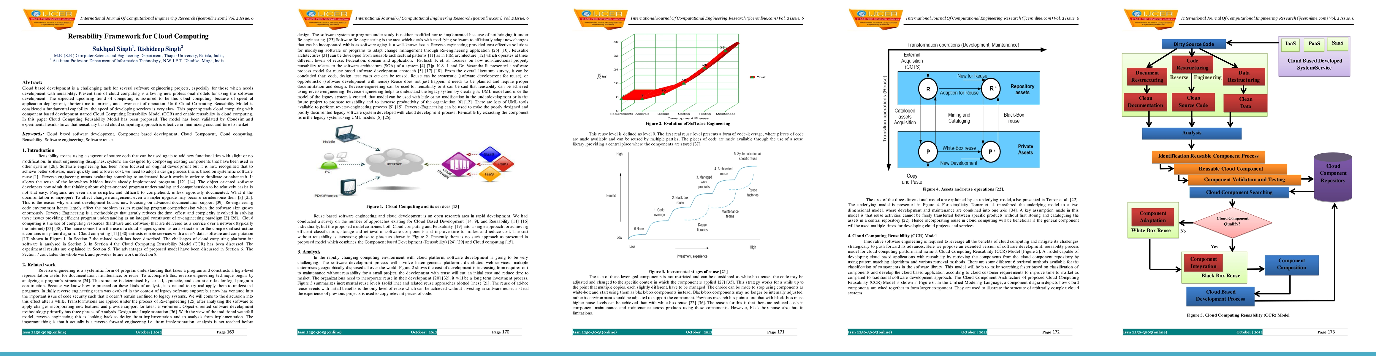 This paper proposes a Cloud Computing Reusability Model (CCR) to enhance component-based development in cloud computing, validated through Cloudsim, demonstrating its effectiveness in reducing deployment costs and time to market.
