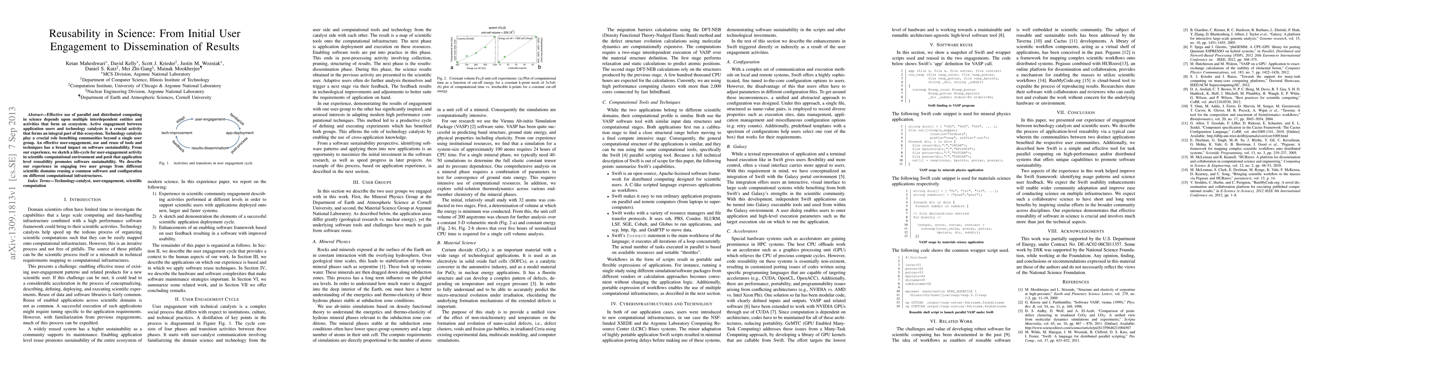 This research paper explores how reusing scientific tools and techniques can promote software sustainability and improve collaboration among different user groups. It highlights the importance of effective user engagement in achieving broad impact on software reuse.