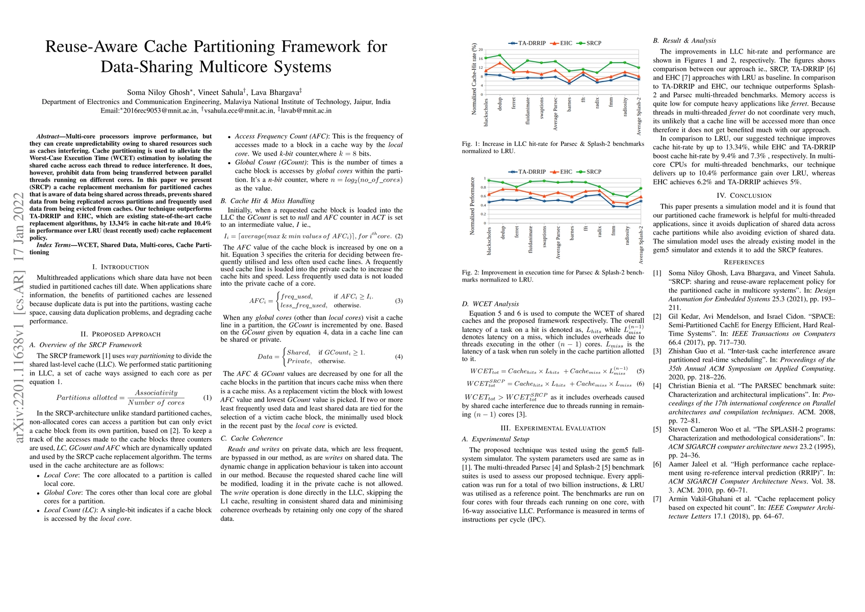 This paper introduces a reuse-aware cache partitioning framework (SRCP) for multicore systems to improve performance by minimizing cache interference. It outperforms existing algorithms in cache hit-rate and performance by leveraging awareness of shared data to prevent unnecessary replication and evictions.