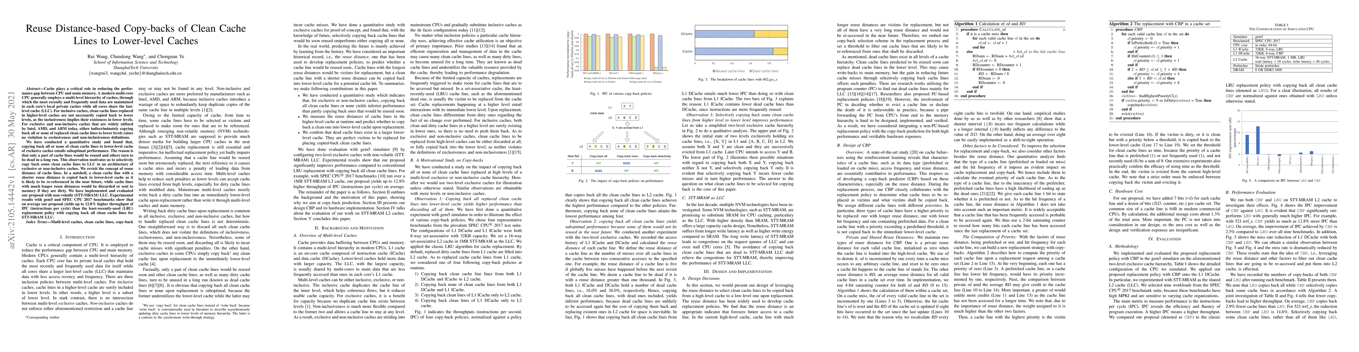 This paper proposes a selective copy-back strategy for clean cache lines in exclusive or non-inclusive cache architectures to optimize performance. By copying only cache lines with shorter reuse distances to lower-level caches, the method aims to enhance reuse rates and reduce dead cache lines. Experimental results show a 12.8% higher IPC throughput compared to indiscriminate copy-back strategies.