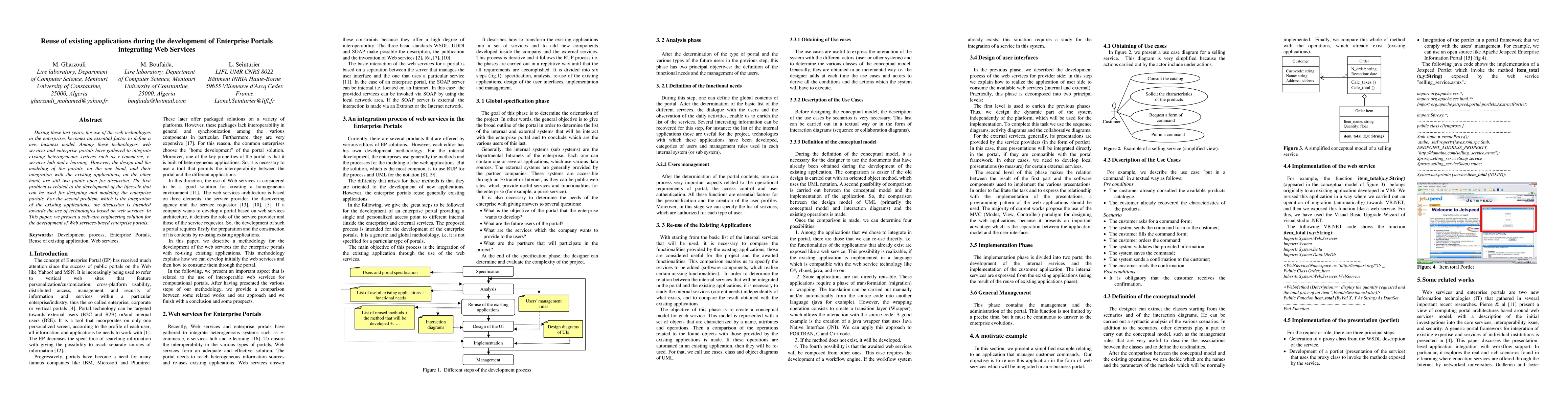 This paper proposes a software engineering approach to develop Web services-based enterprise portals, focusing on the reuse of existing applications and addressing the challenges of portal design and integration with legacy systems. The solution aims to streamline the lifecycle of portal development and enhance interoperability through web services.