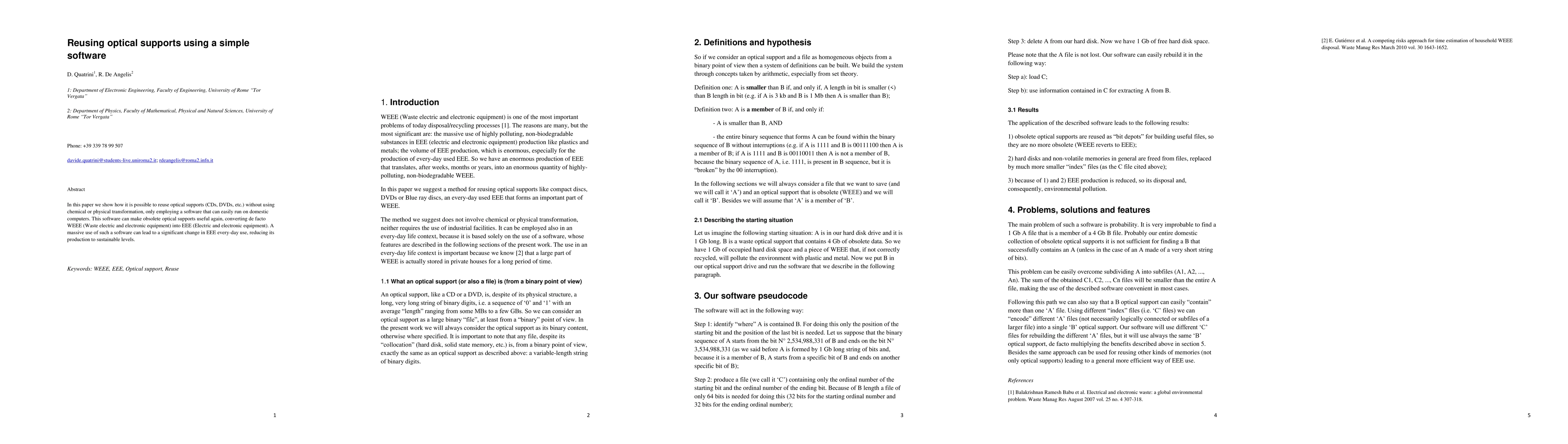 In this paper we show how it is possible to reuse optical supports (CDs, DVDs, etc.) without using chemical or physical transformation, only employing a software that can easily run on domestic computers. This software can make obsolete optical supports useful again, converting de facto WEEE (Waste electric and electronic equipment) into EEE (Electric and electronic equipment). A massive use of such a software can lead to a significant change in EEE every-day use, reducing its production to sustainable levels.