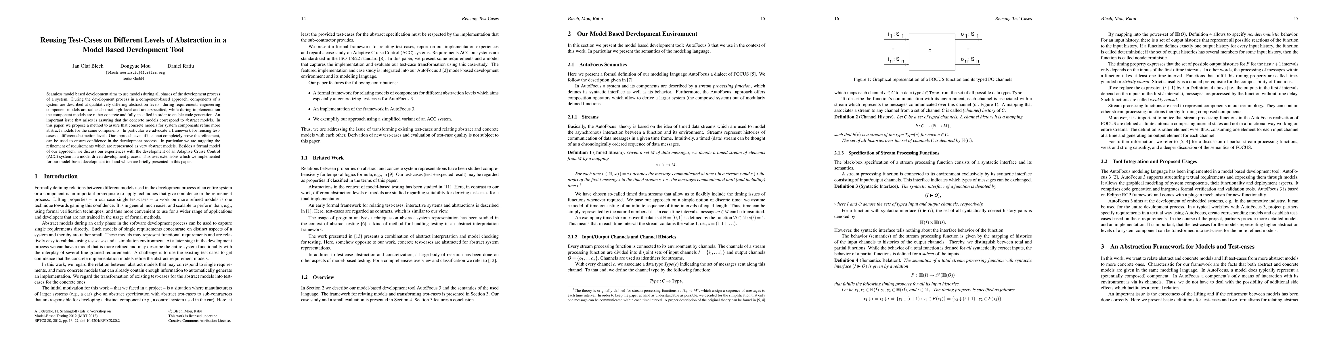 A method for reusing test cases at different abstraction levels in model-based development is proposed to ensure confidence in the development process. This approach can refine requirements from abstract models to concrete ones, improving system reliability and accuracy.